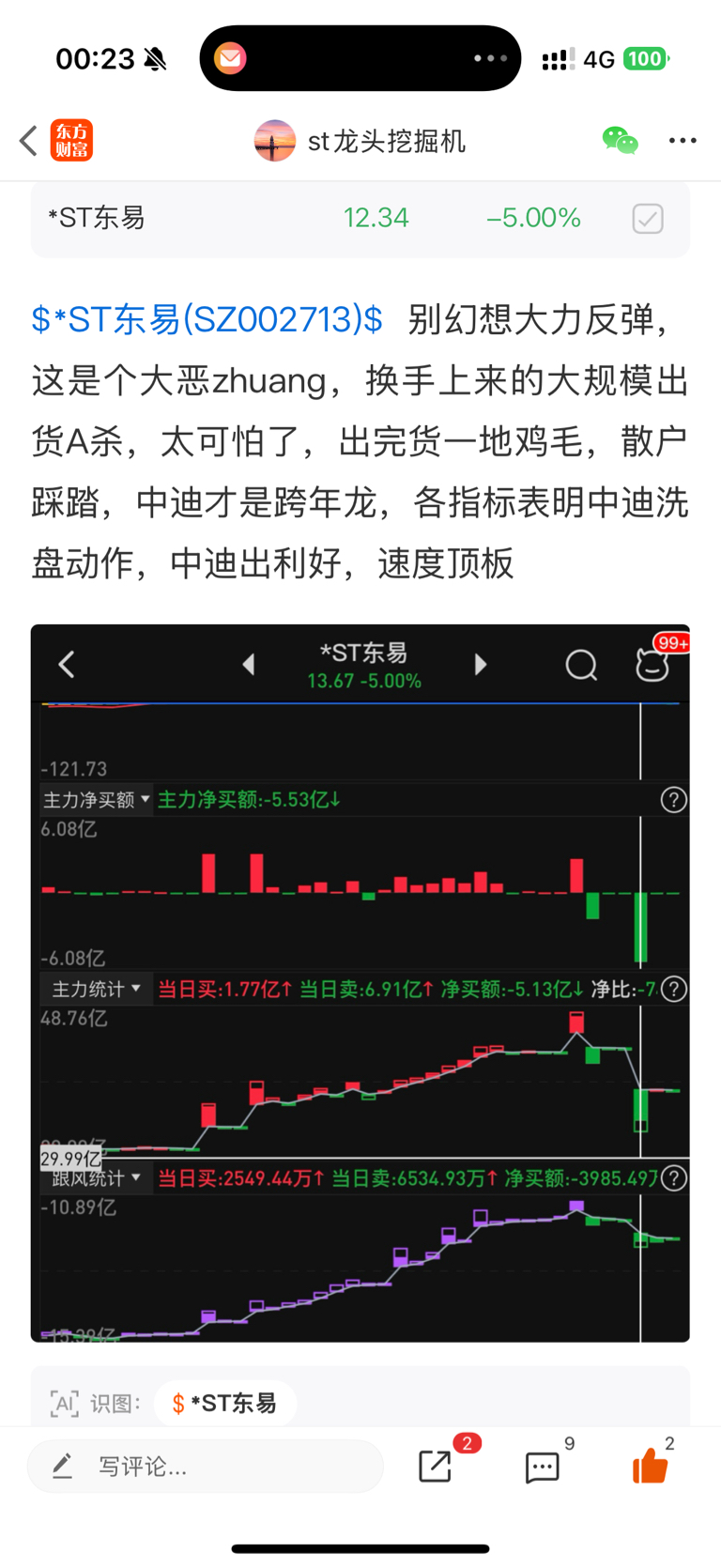 $*ST东易(SZ002713)$ 上周就提醒了主力不惜代价,几个亿的砸盘,以为开玩笑啊,而且砸盘非常的急,没有一点反抗,基本开盘就跌停,所以说,拉升开板都是逃命机会