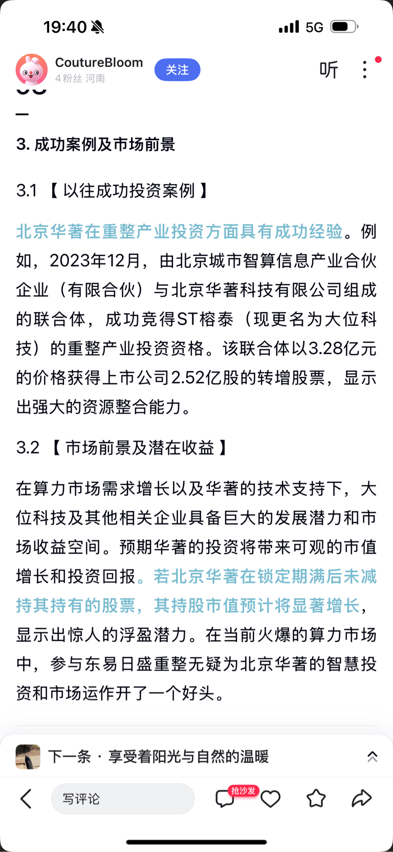 $*ST东易(SZ002713)$ 华著操盘大位科技非常成功!还是大股东!