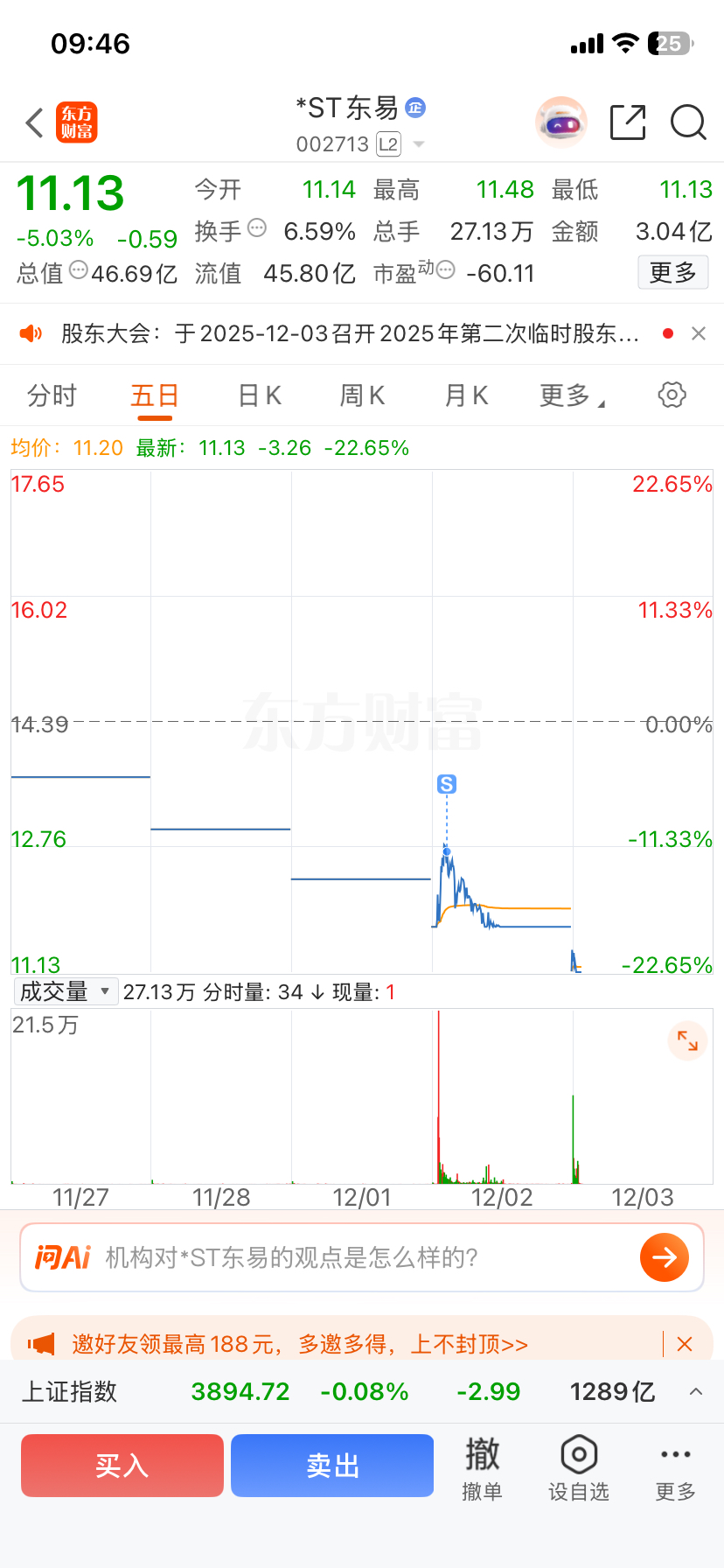 $*ST东易(SZ002713)$ 还好昨天割肉跑了