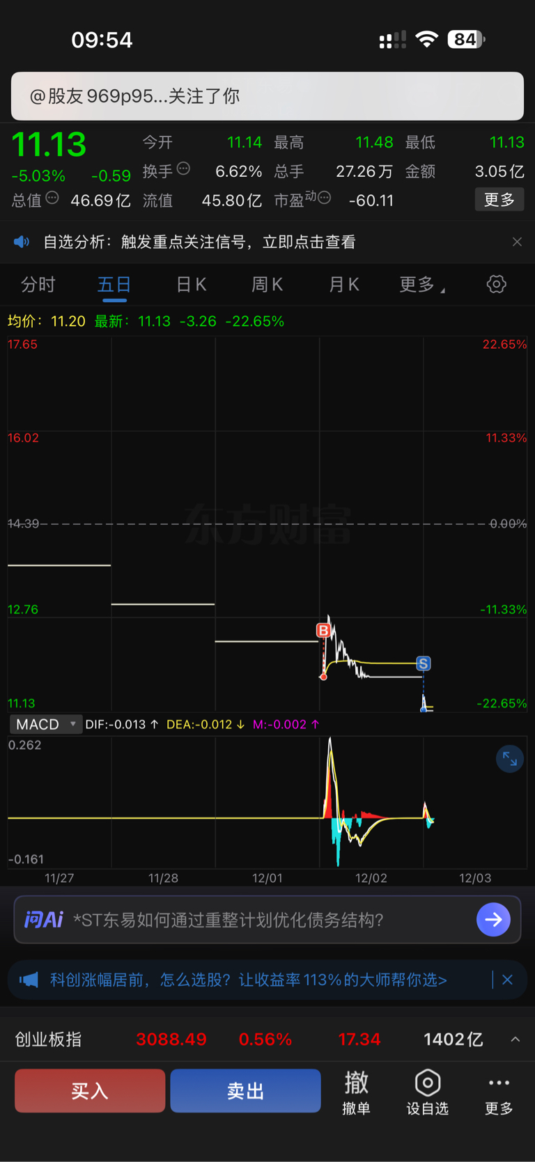$*ST东易(SZ002713)$ 跑了过两天把亏损加倍赚回来