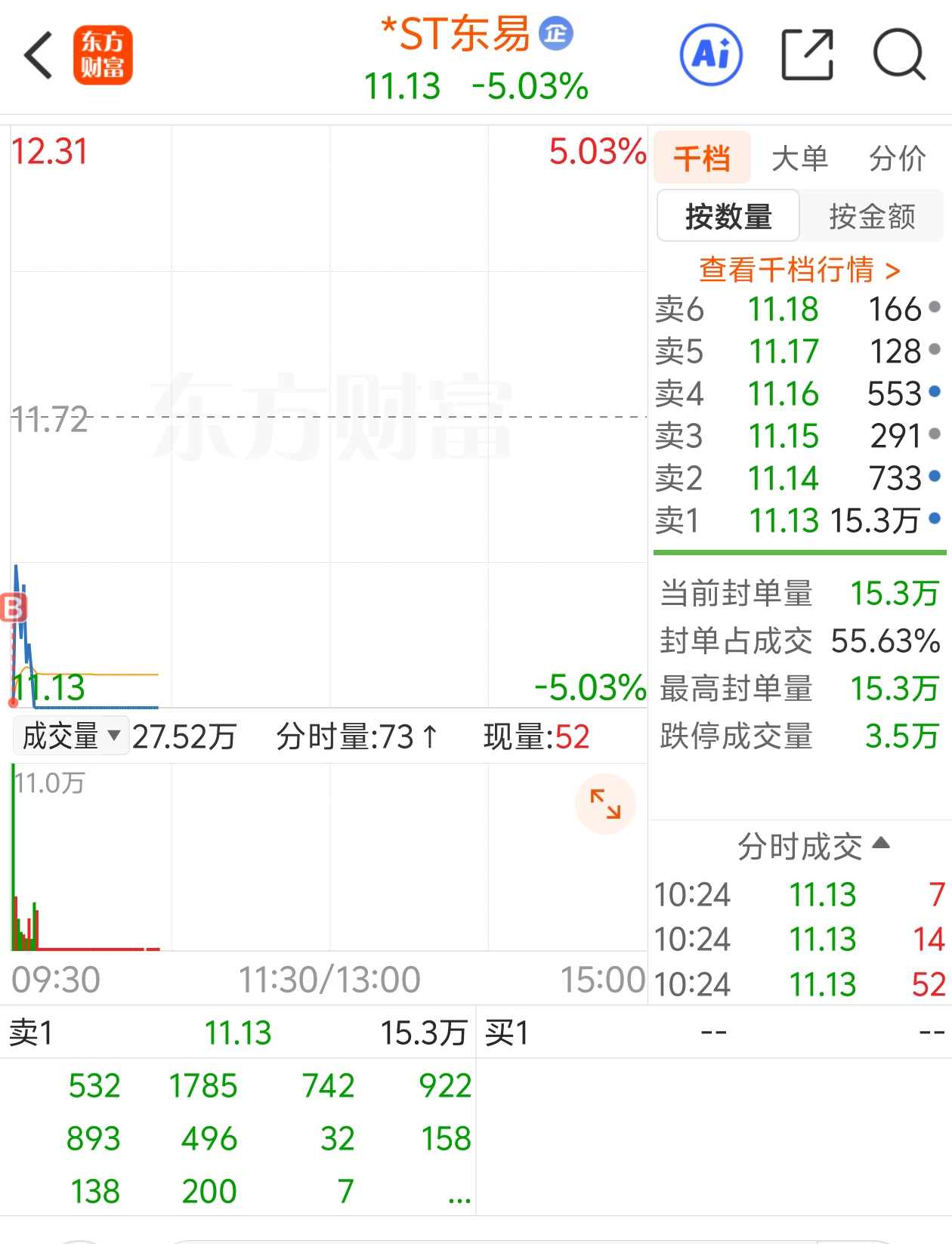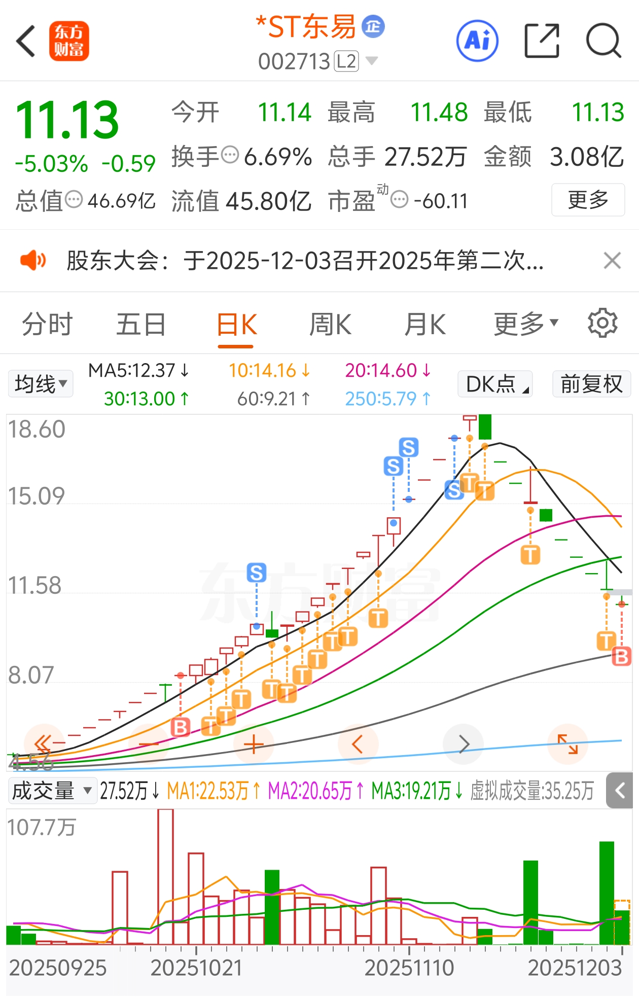 $*ST东易(SZ002713)$ 今天走势昨天已经预料,具体看昨天分析,这两天随时出重整草案,然后反转,做为踢神,今天加仓,不踢,别说我是能力不够,我做踢就没失过手,但今天格局,不踢,我要的是波段反转。