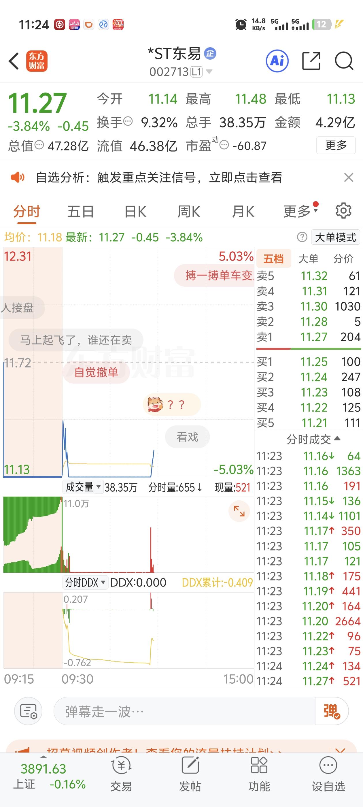 $*ST东易(SZ002713)$ 只要不再跌停板,就明显见底拉升大涨了