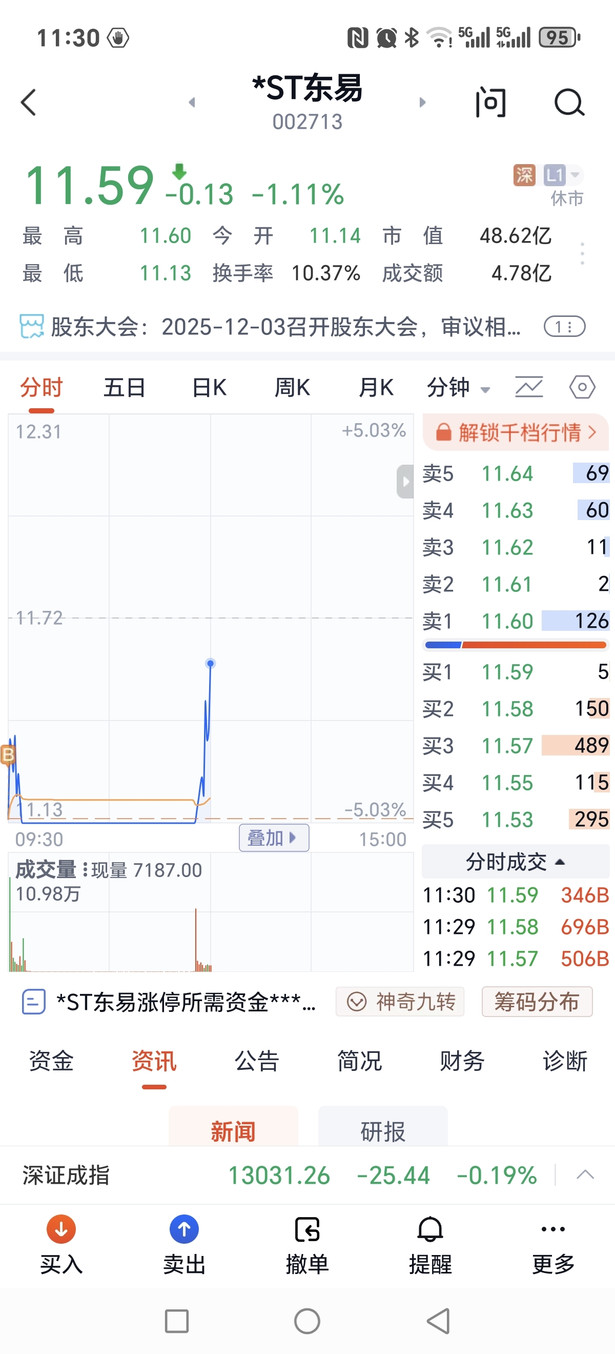 $*ST东易(SZ002713)$ 竞价入的,虚惊一场。