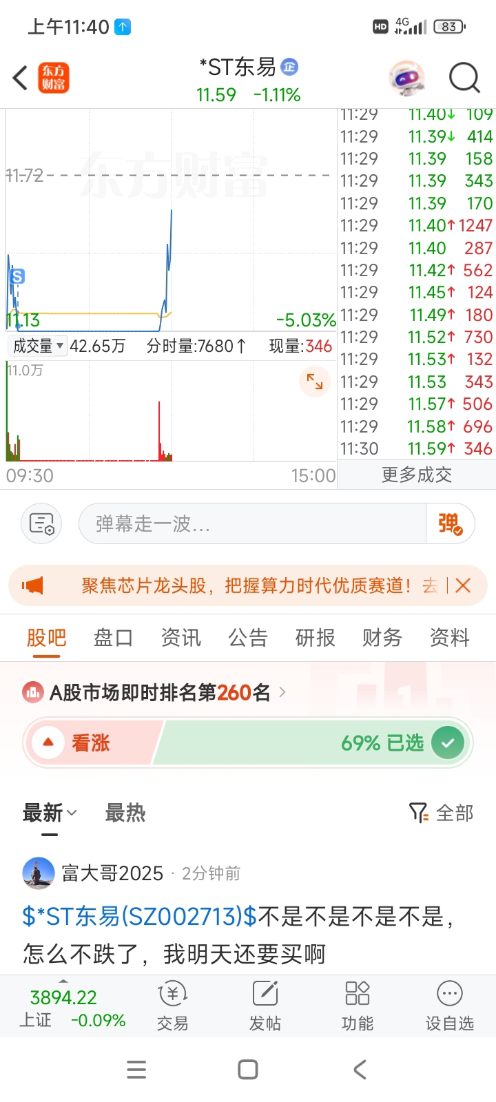 $*ST东易(SZ002713)$ 真它马黑,不是个东西,刚卖,它就拉