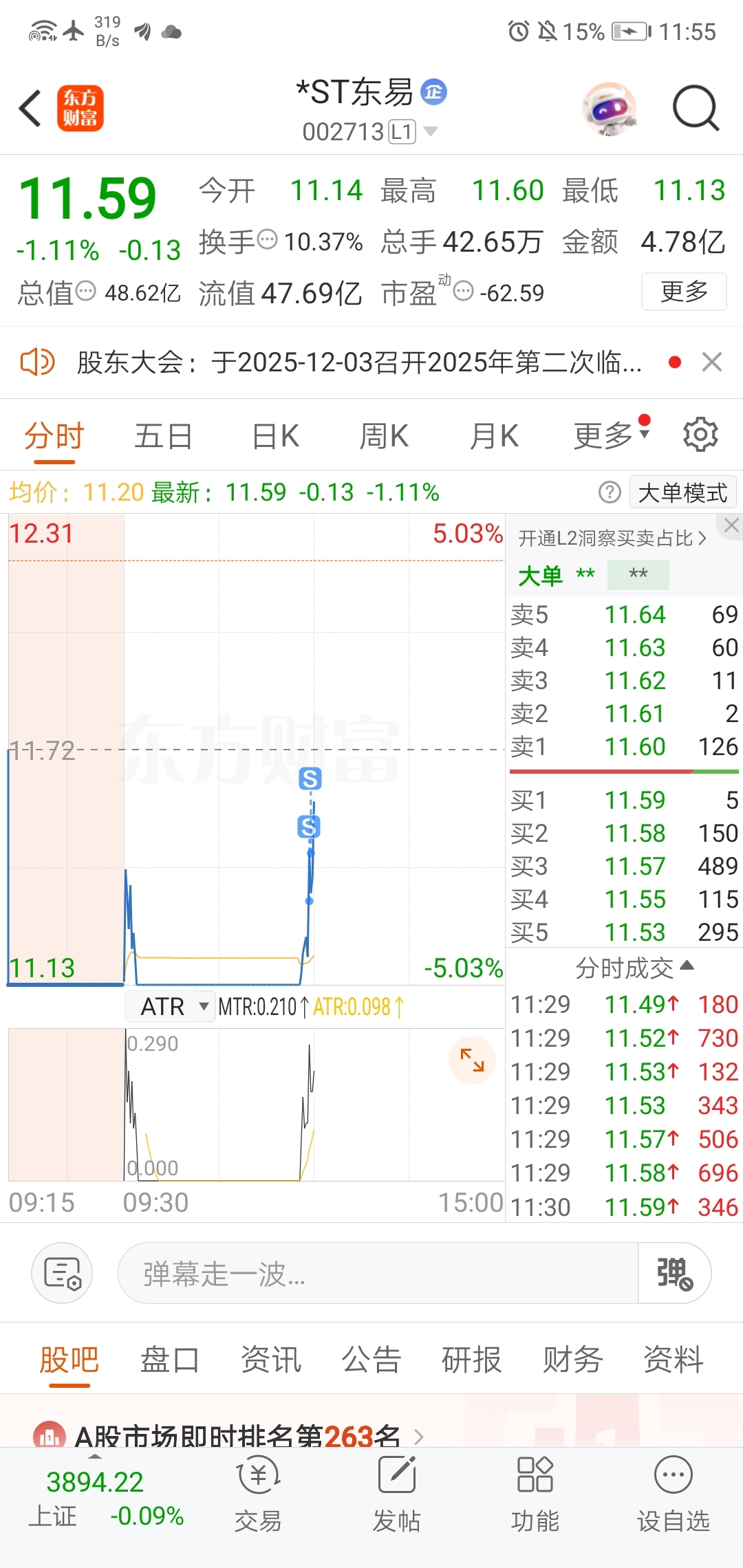 $*ST东易(SZ002713)$ 水下割了三分之一仓位,有点后悔!感觉下午会地天板!