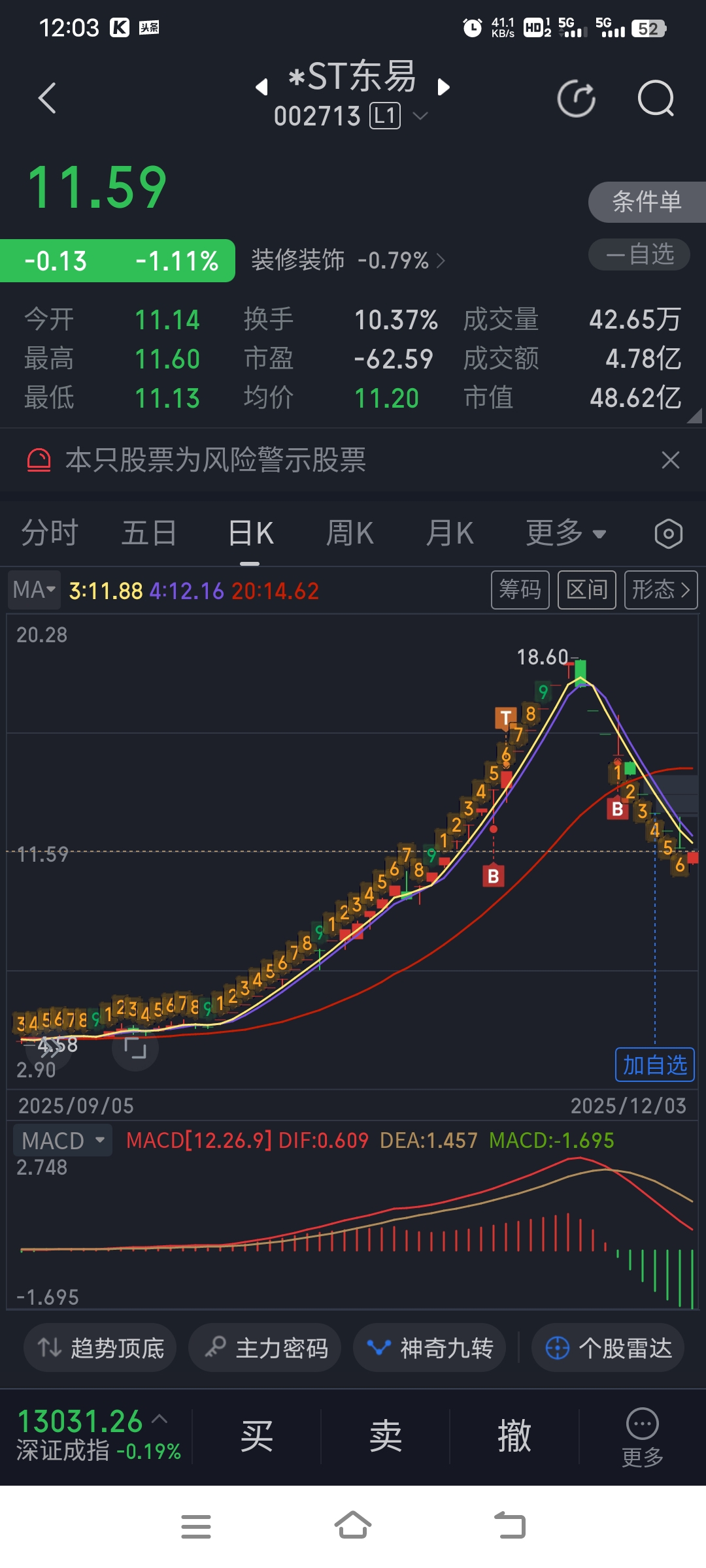 $*ST东易(SZ002713)$ 风水轮流转,今天开始到正平和中迪
