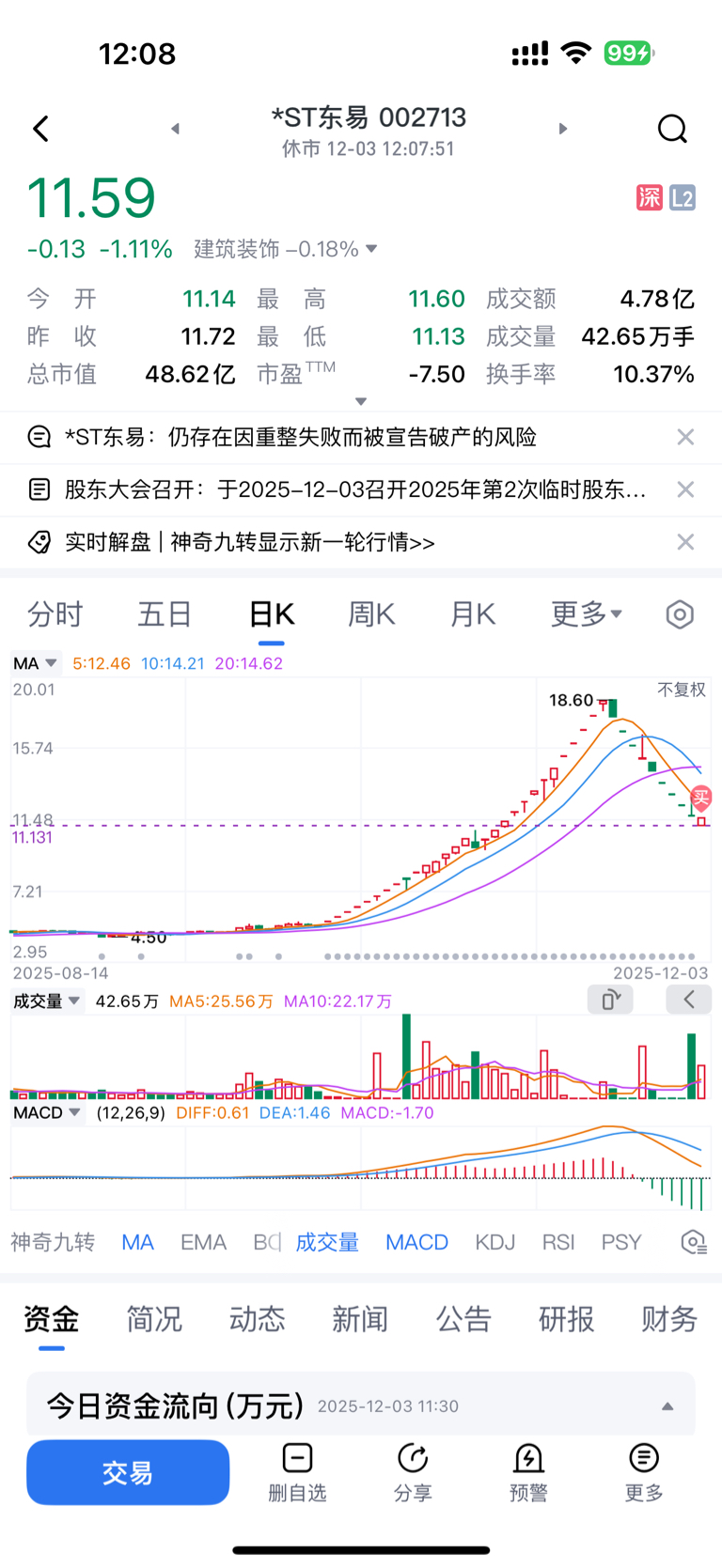 $*ST东易(SZ002713)$ 板上吃了半仓,另半仓留给明天的中迪
