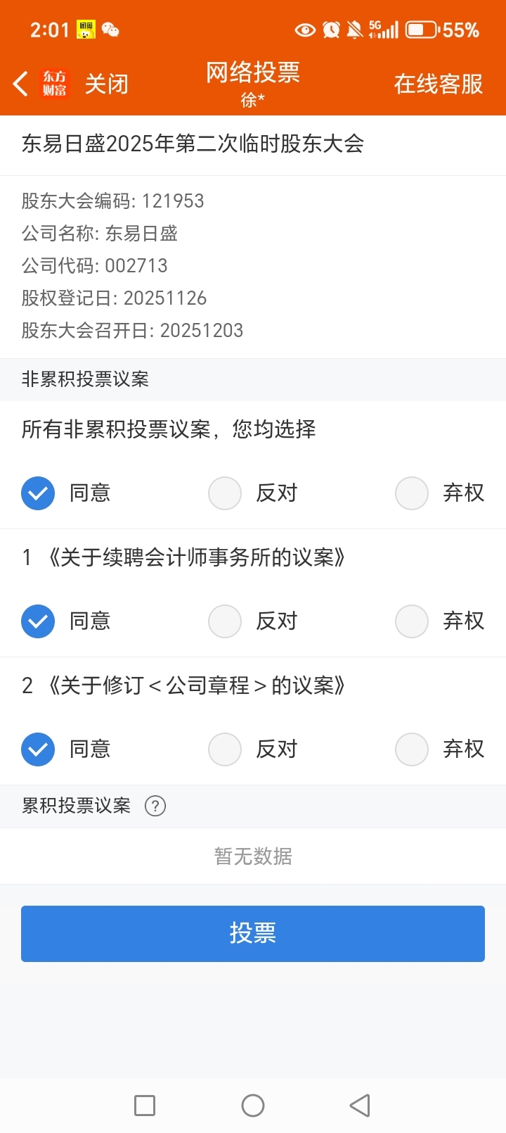 $*ST东易(SZ002713)$ 记录人生中第一次投票。