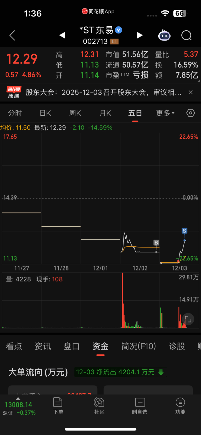 $*ST东易(SZ002713)$ 马马虎虎吧