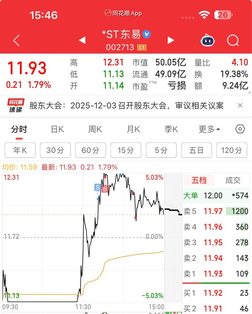 $*ST东易(SZ002713)$ 说实话今天好纠结,预感不会封涨停,所以都卖了,后来终于跌下来了,符合预期
