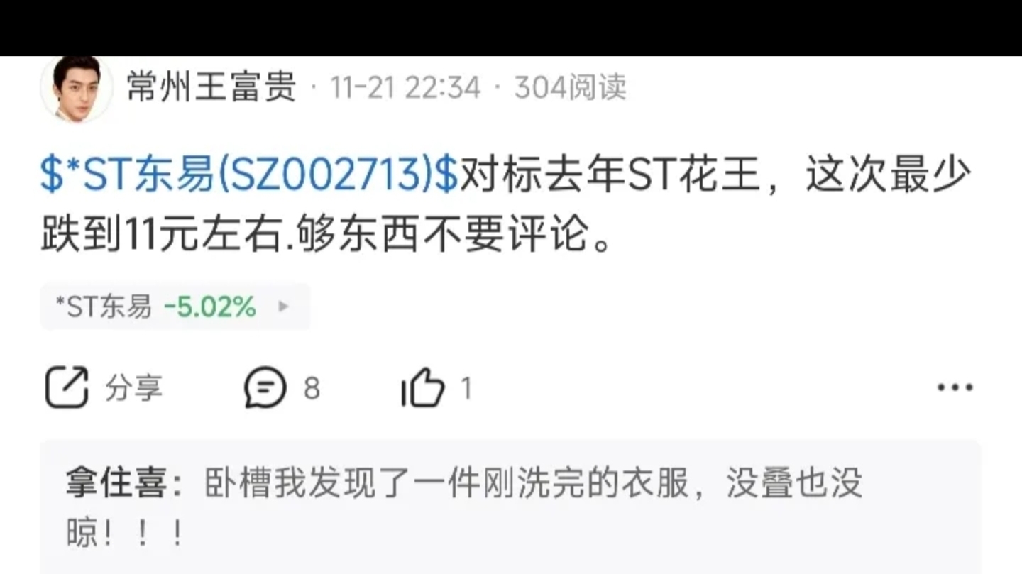 $*ST东易(SZ002713)$ 还有人不服吗?此谷重整完成后,除权股价在6元左右,1月份下跌.一直跌到1月28号为止,够东西不要评论,关注大姐不迷路。
