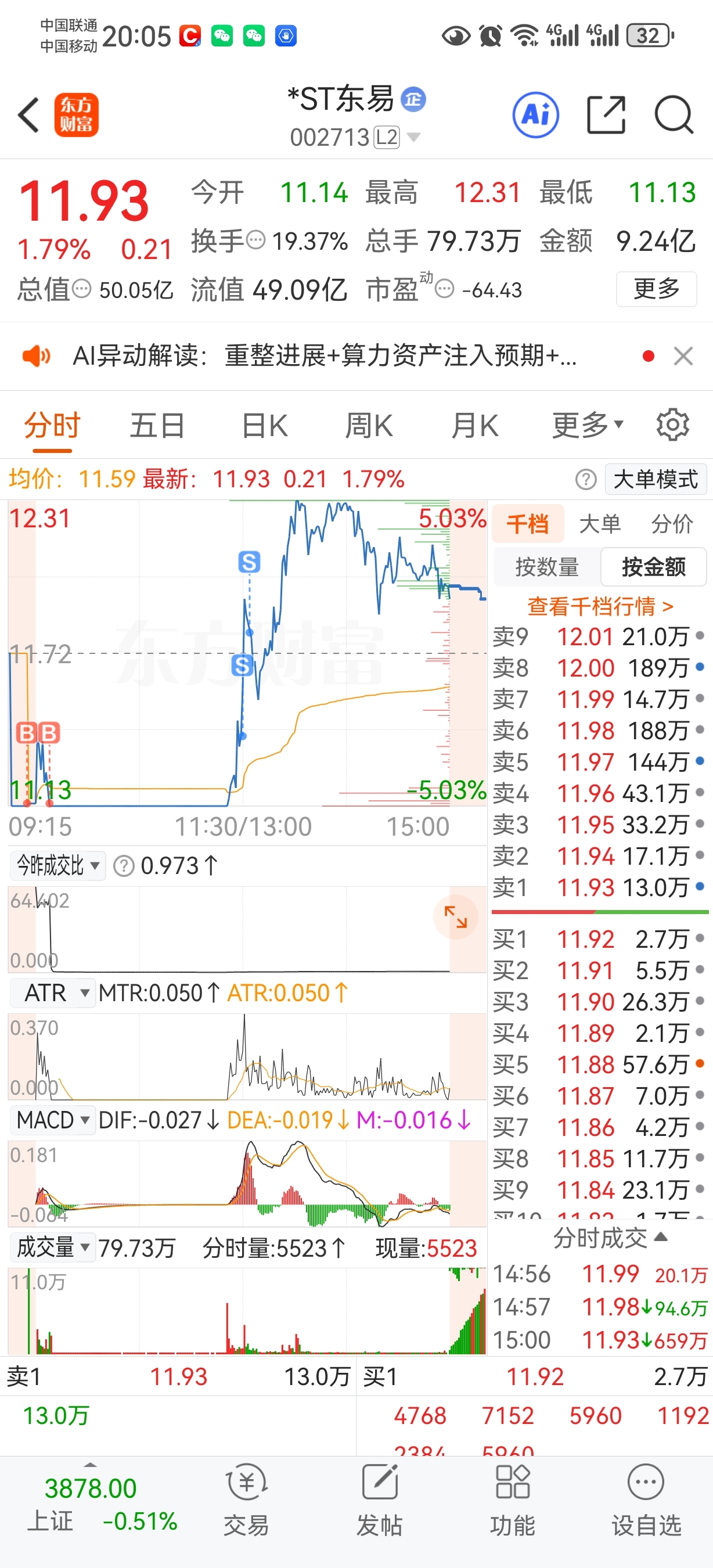 $*ST东易(SZ002713)$ 套它个猴子的,终于来个好消息,就算明天地板。心里也开心。