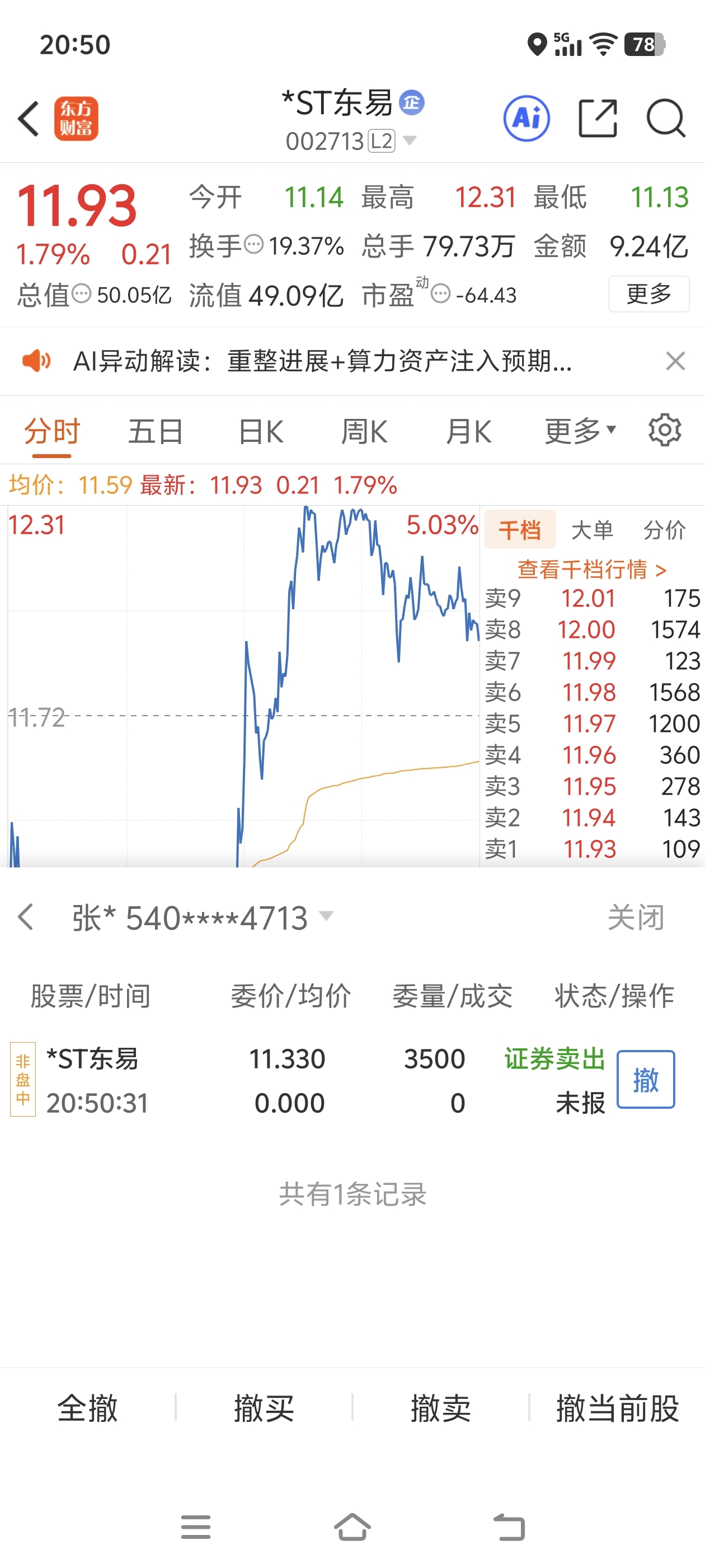 $*ST东易(SZ002713)$ 兄弟们我已经挂了快跑11.33