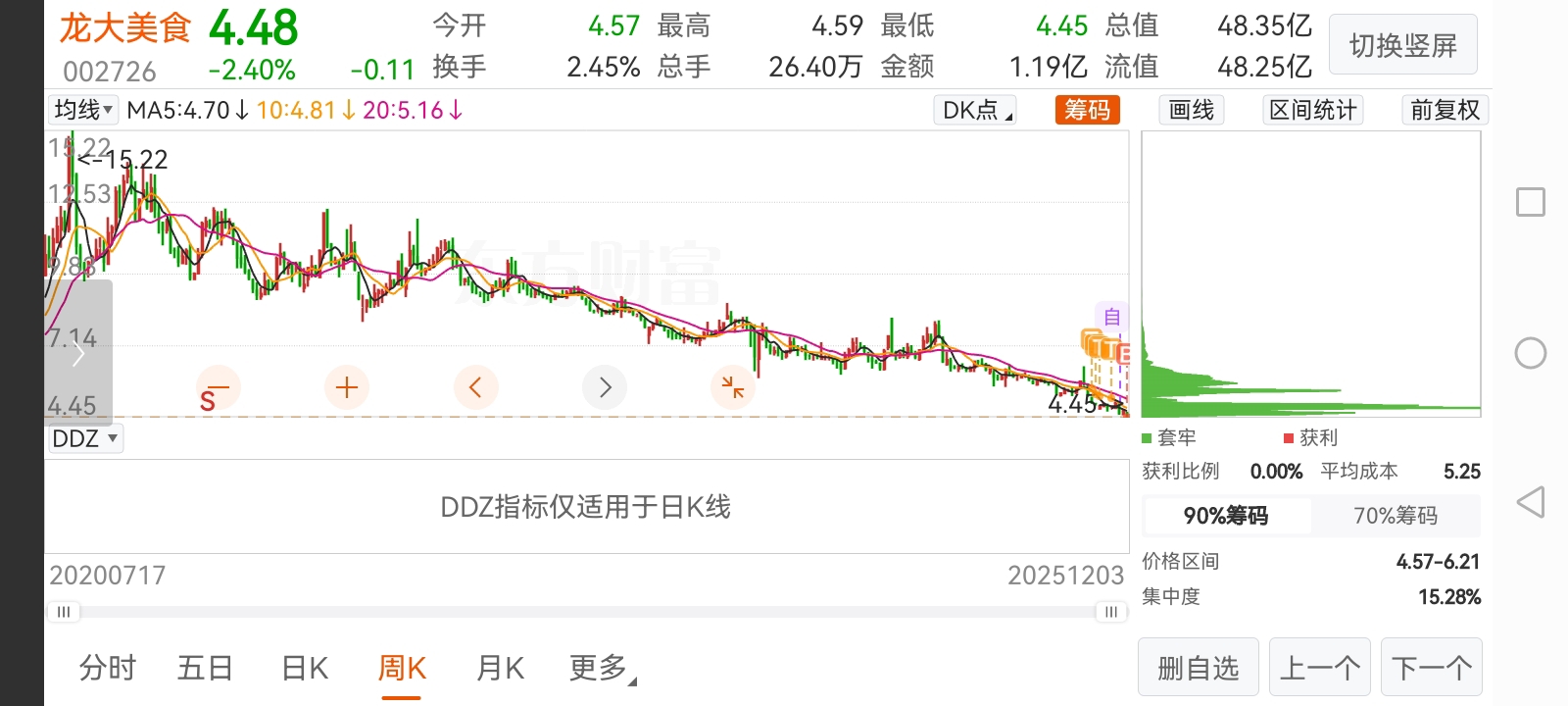 抄底的技术难度太大了,东易抄底抄在半山腰,龙大美食连跌五年还是抄在半山腰,追涨又