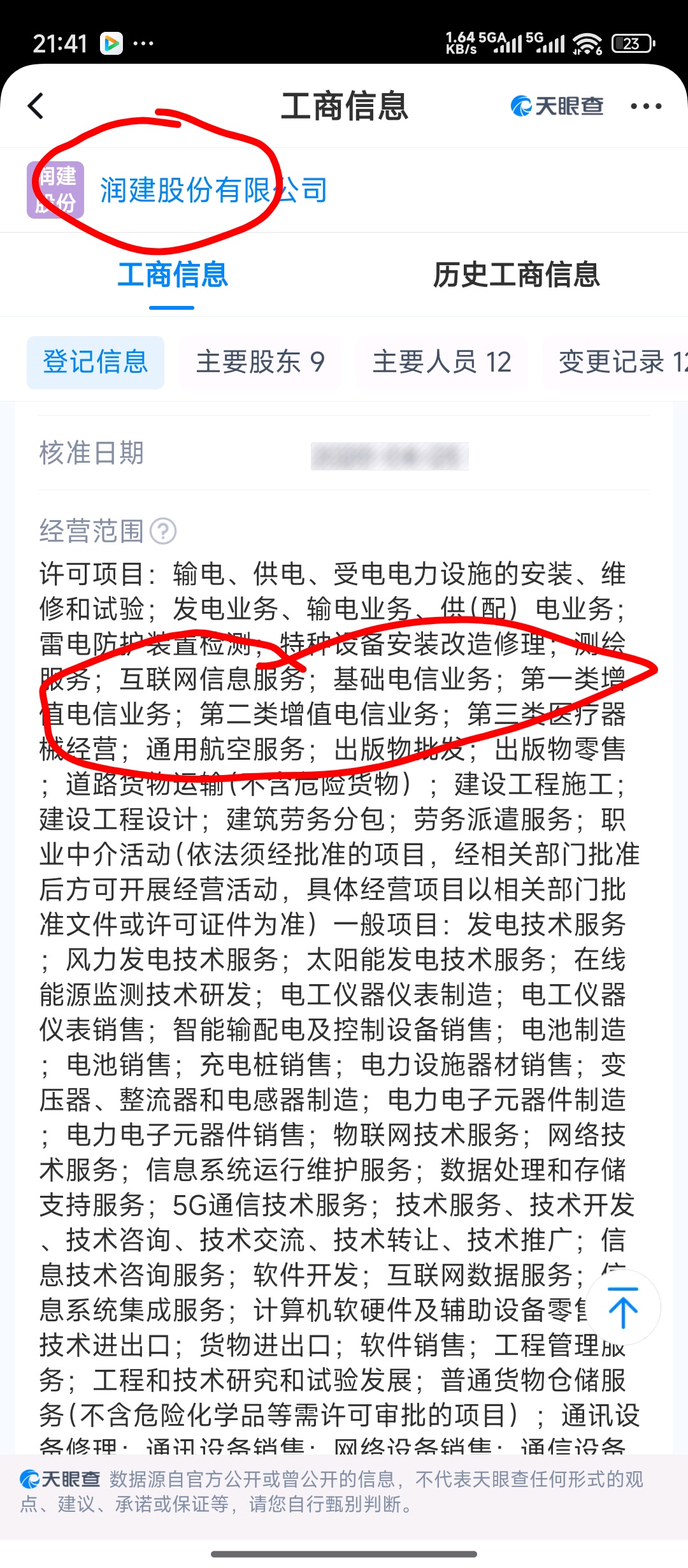 对比几家算力公司(润建,中贝,鸿博)工商经营范围均包括第一二类增值电信业务。,所