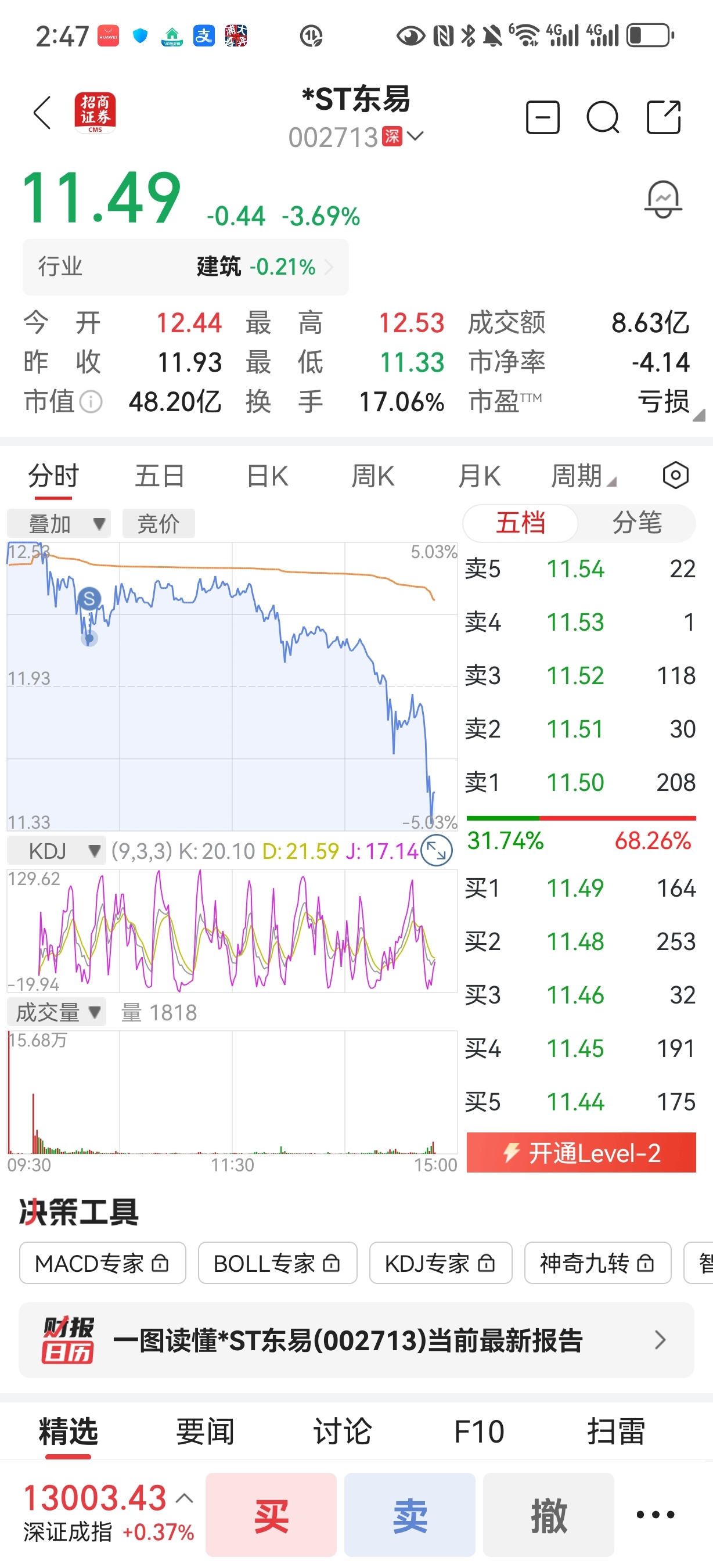 $*ST东易(SZ002713)$ 现在心里舒服多了!上午卖了还怪难受