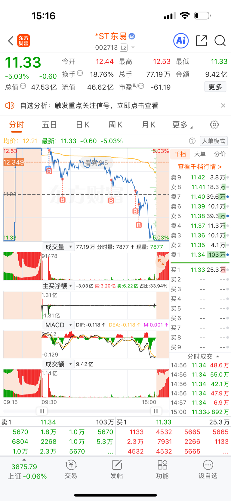 $*ST东易(SZ002713)$ 真的 真的很羡慕你们在这个市场赚到钱的人。我吃了十个地板。见到曙光我加仓了从每天几千块亏损连续9天啊 昨天才赚一个多点 今天开盘涨停我真的觉得终于让我挺过来了。呵呵所以我加仓了。错了吗?真错了吗?我就想把我亏的拿回来。这怎么了 真的不明白。为什么是这个结局。真他麻难受 我一个快40的大老爷们想哭