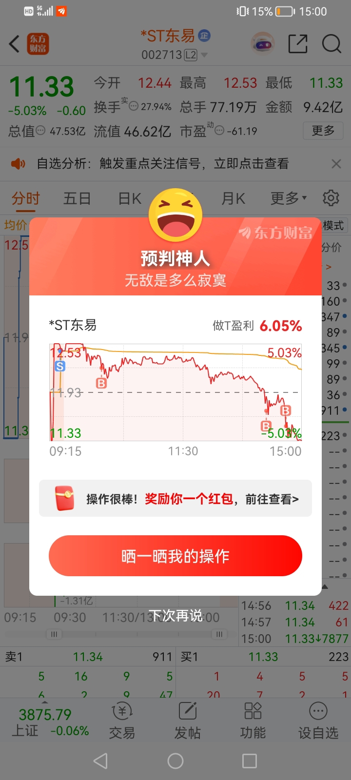 $*ST东易(SZ002713)$ 因为昨天跌停板割肉半仓,今天早上集合竞价全跑了,下午又接回来两成仓!东易的底真难抄,比万方还难抄底!因为买了东易导致我连绿十天!你们知道我这十天是怎么过的吗?庄太狠了