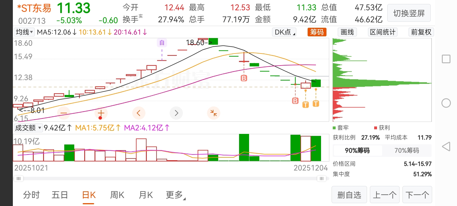 $*ST东易(SZ002713)$ 做T了,下跌不是因为散户做T,东易每天都跌停是因为主力出货!主力成本太低,即使跌到八元出货主力也暴赚!主力建仓早成本在4~6元,所以主力在清仓大甩卖!