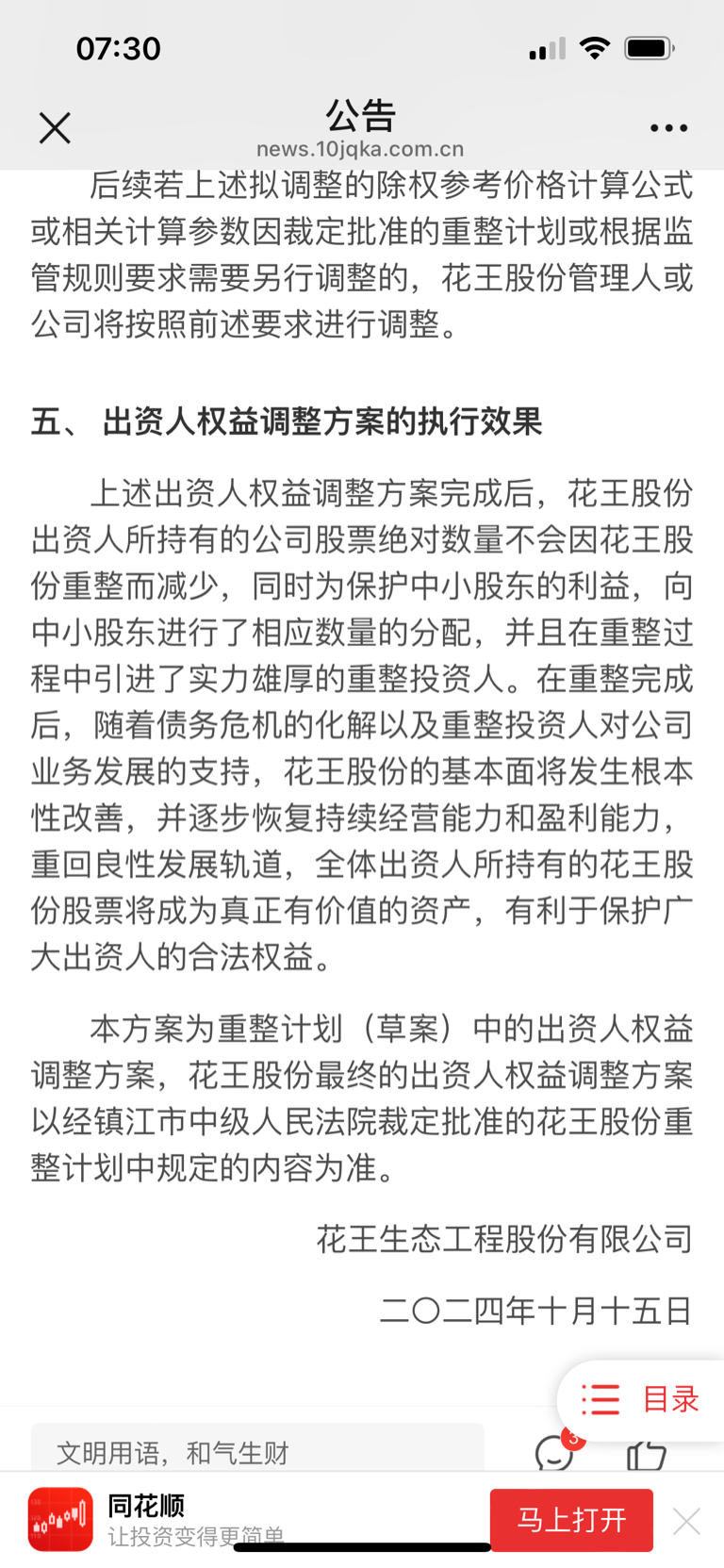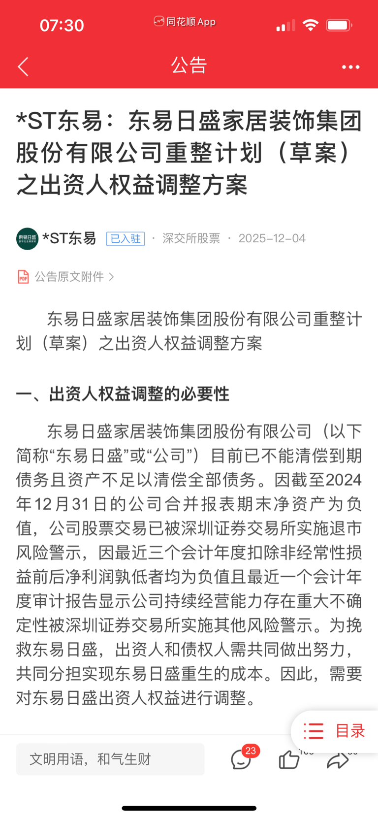 花王24年1 0月15日出的权益调整草案,之后疯了从7块一路涨到18,今年东易提前疯涨到18应该是受它影响,那么前天东易也出了这草案,花王以15块除权幅度是43 %(除权怎么也没涨过去,现在更是惨到回5块多),东易11块33如果除权仅除27 %,所以吃类似花王去年18块调整到11块6又用1个月涨到除权日的15块3还是有一定机会,而且东易离除权日如果类比花王还有6、70天,炒作周期也多一些