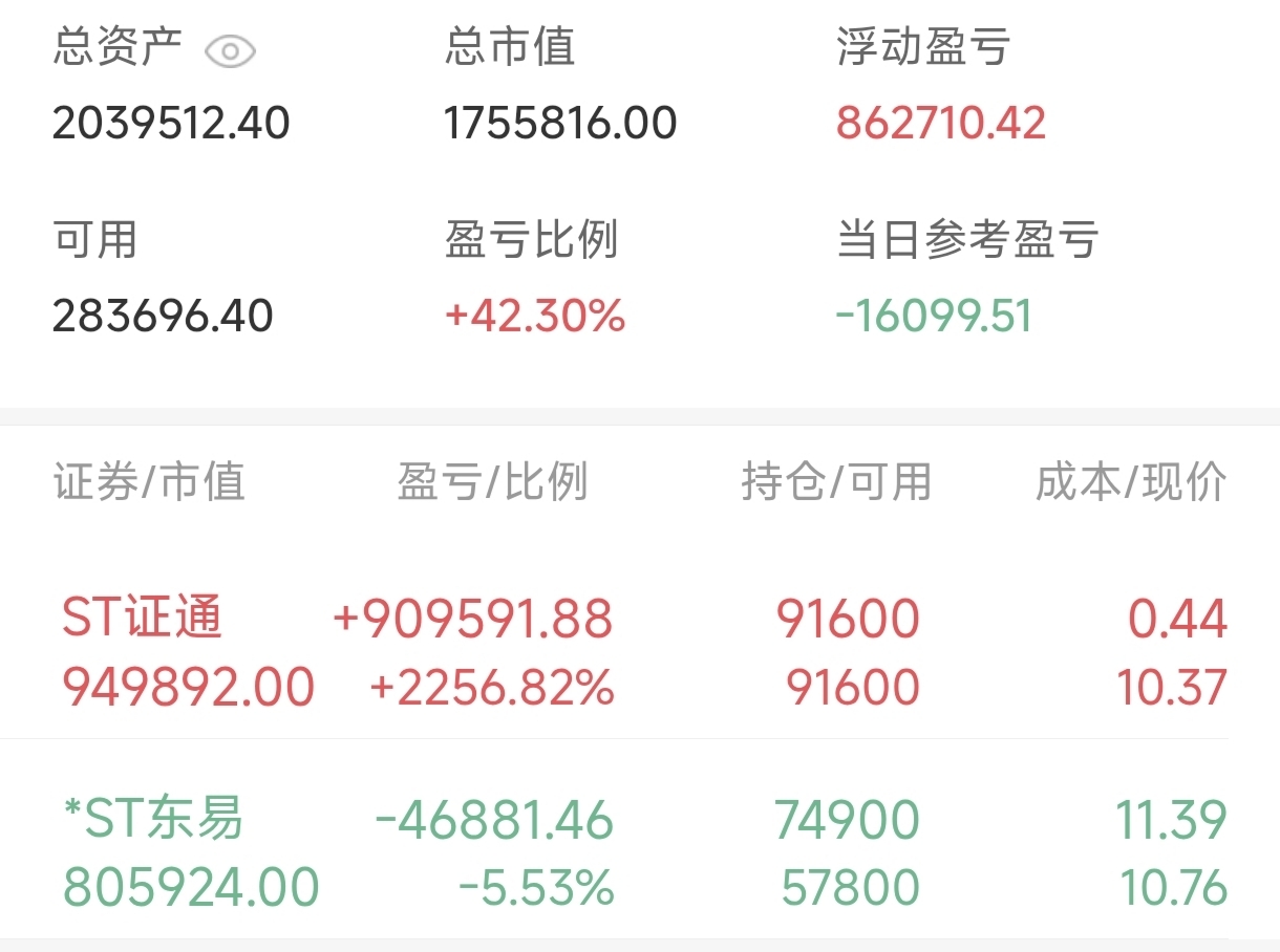 $*ST东易(SZ002713)$ 看空的可以挂跌停卖了,我继续加仓17100股,别人恐慌我贪婪长线看到59元