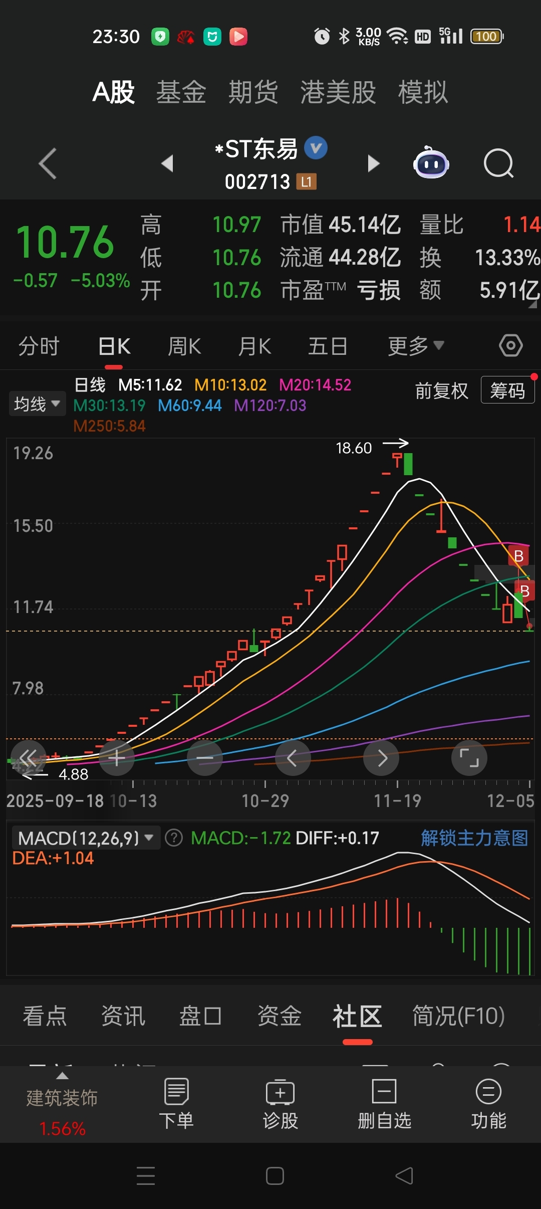 $*ST东易(SZ002713)$ 连补二天,正好赶上。嘿嘿