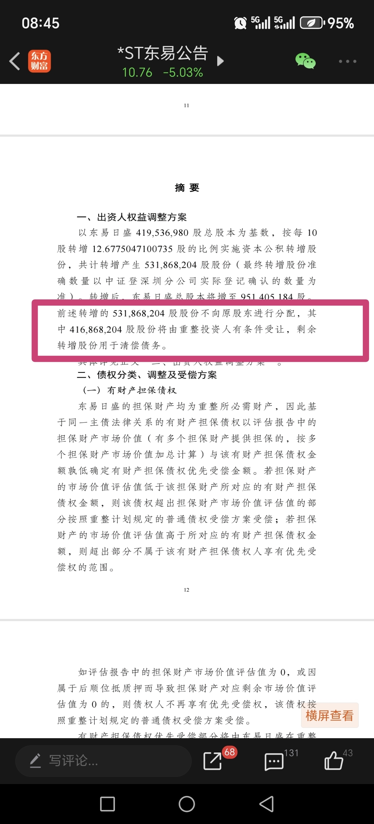 $*ST东易(SZ002713)$ 这是要把持仓资金砍一大半呀,填不了权就一起当股东了