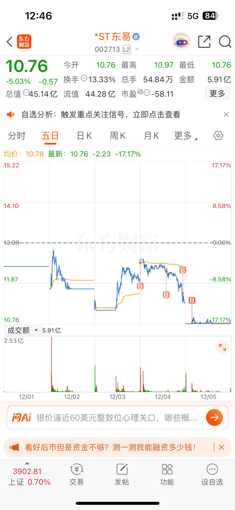$*ST东易(SZ002713)$ 周五吃地板,周一当老板。拼一次,富三代。