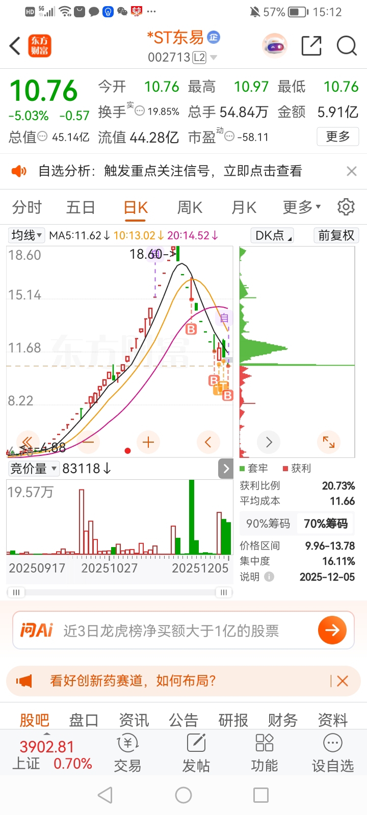今年最大的操作失误是:11块多卖飞航天发展抄底东易,结果现在航天发展都翻倍了,而