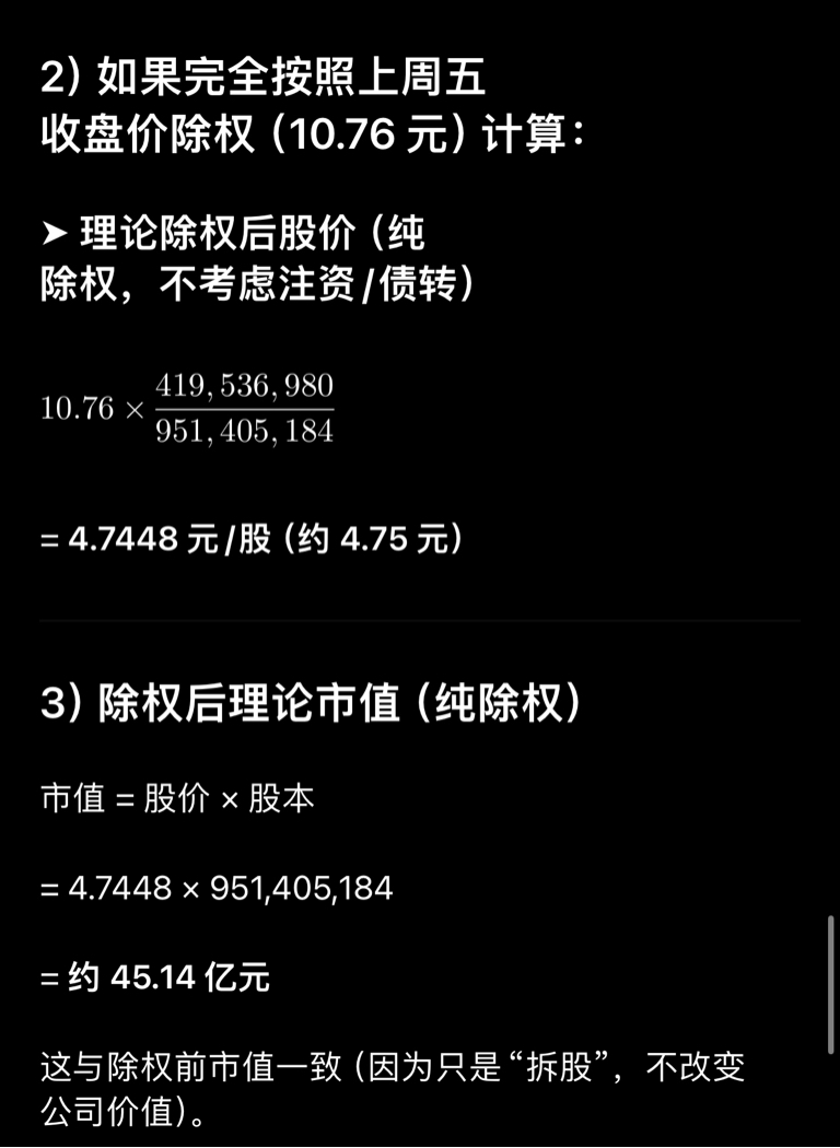 ,事关除权!全股吧没有一个分析除权的,我计算了一下,是按照这个样子除权吗,多头来