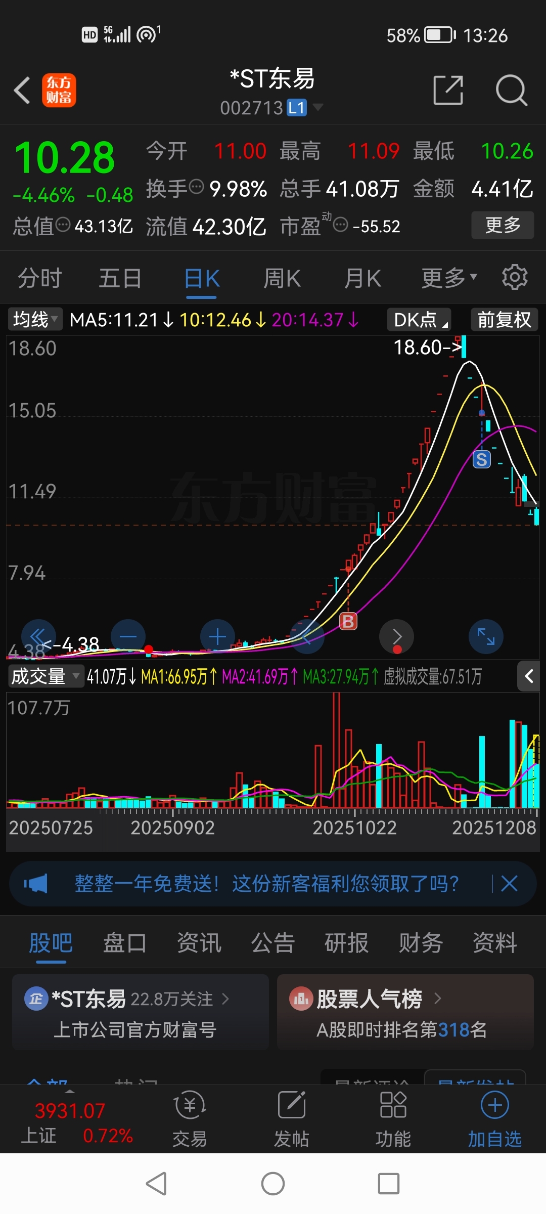 回来看看东易的兄弟,下午准备开仓另一只。有想一起的吗?