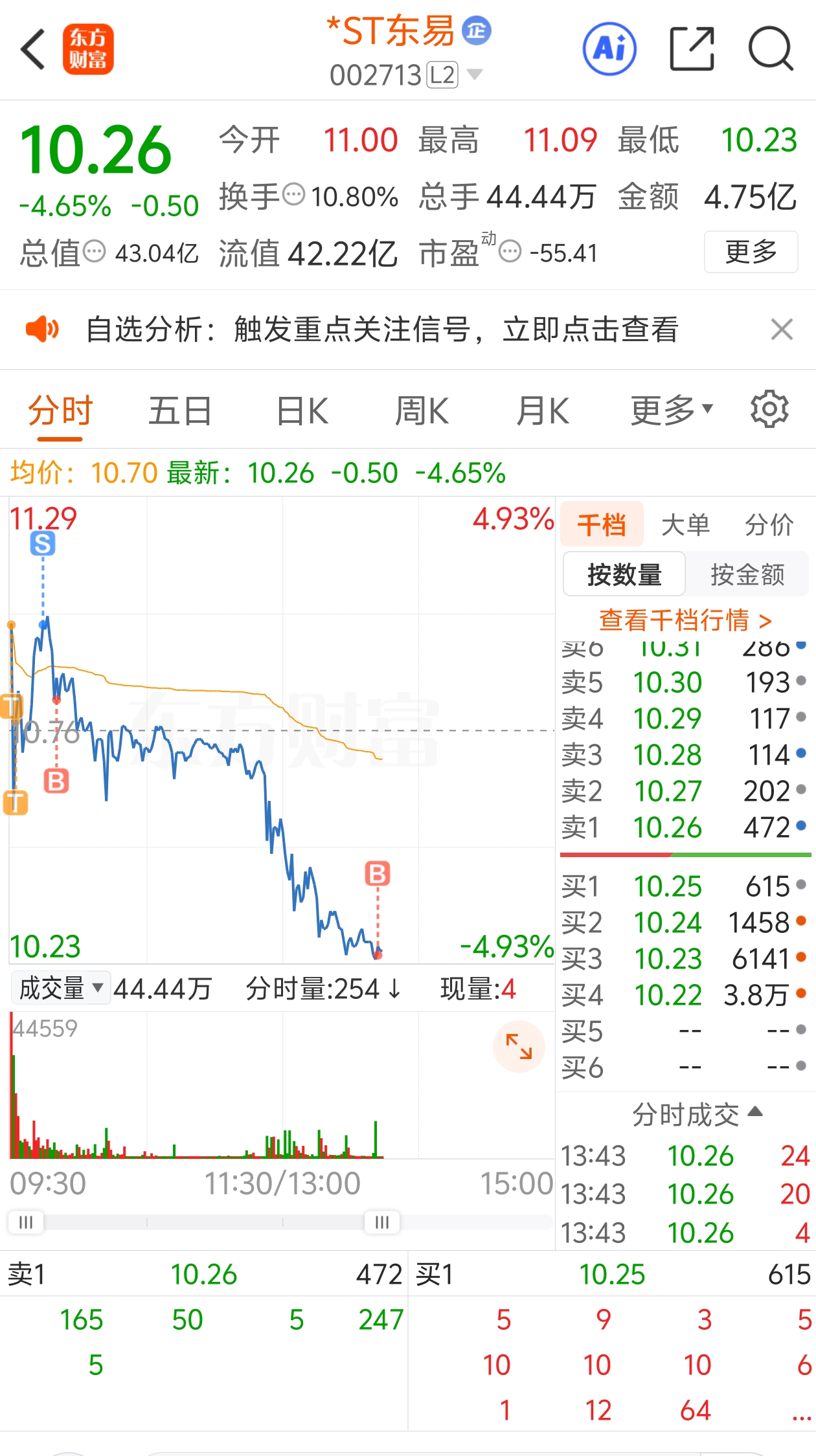 $*ST东易(SZ002713)$ 跌不跌停收,不差这几分钱了,明天跌了再补,刚才看主动封跌停不是很坚决,主力需要引导散户跟风卖出,所以我选择加仓。