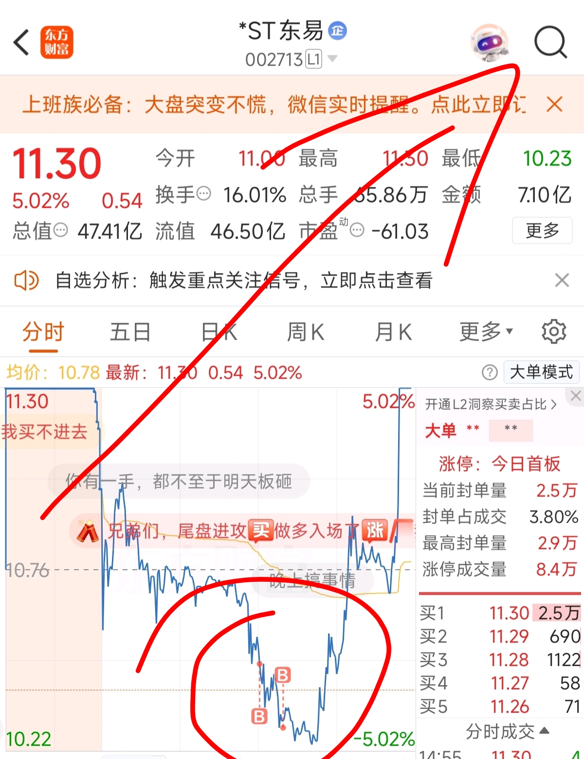 $*ST东易(SZ002713)$ 气运之子,又涨停一个