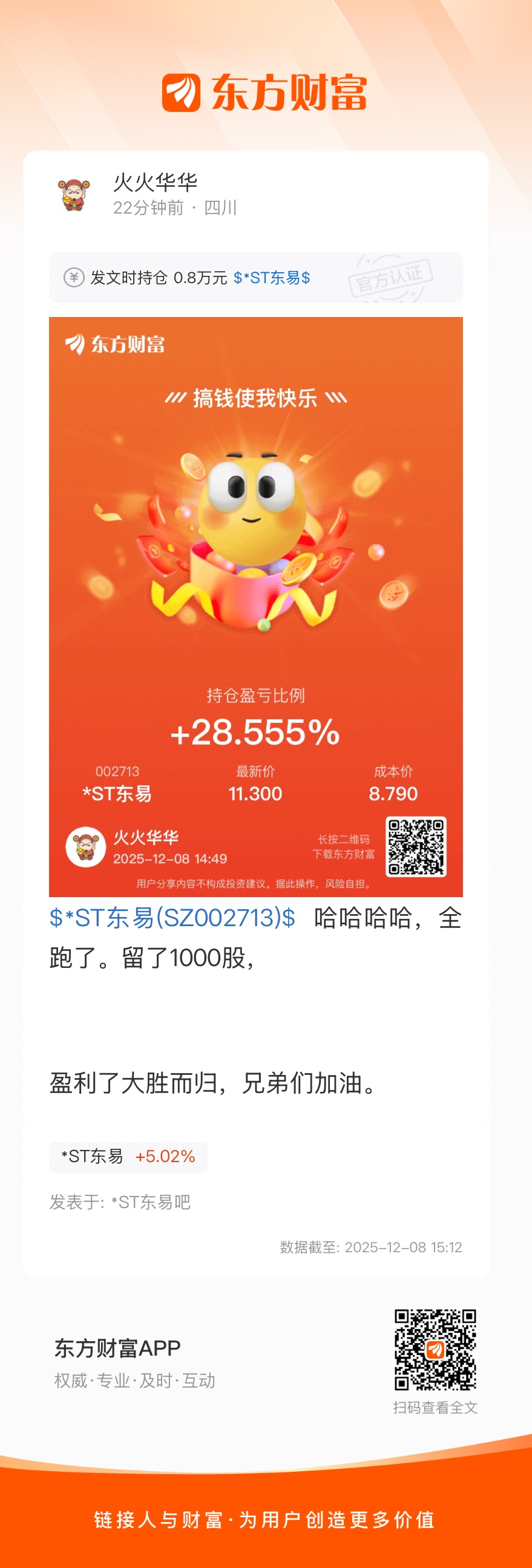 温馨提示: 1.根据《证券法》规定,禁止编造、传播虚假信息或者误导性信息,扰乱证券市场;2.用户在本社区发表的所有资料、言论等仅代表个人观点,与本网站立场无关,不对您构成任何投资建议。用户应基于自己的独立判断,自行决定证券投资并承担相应风险。《东方财富社区管理规定》