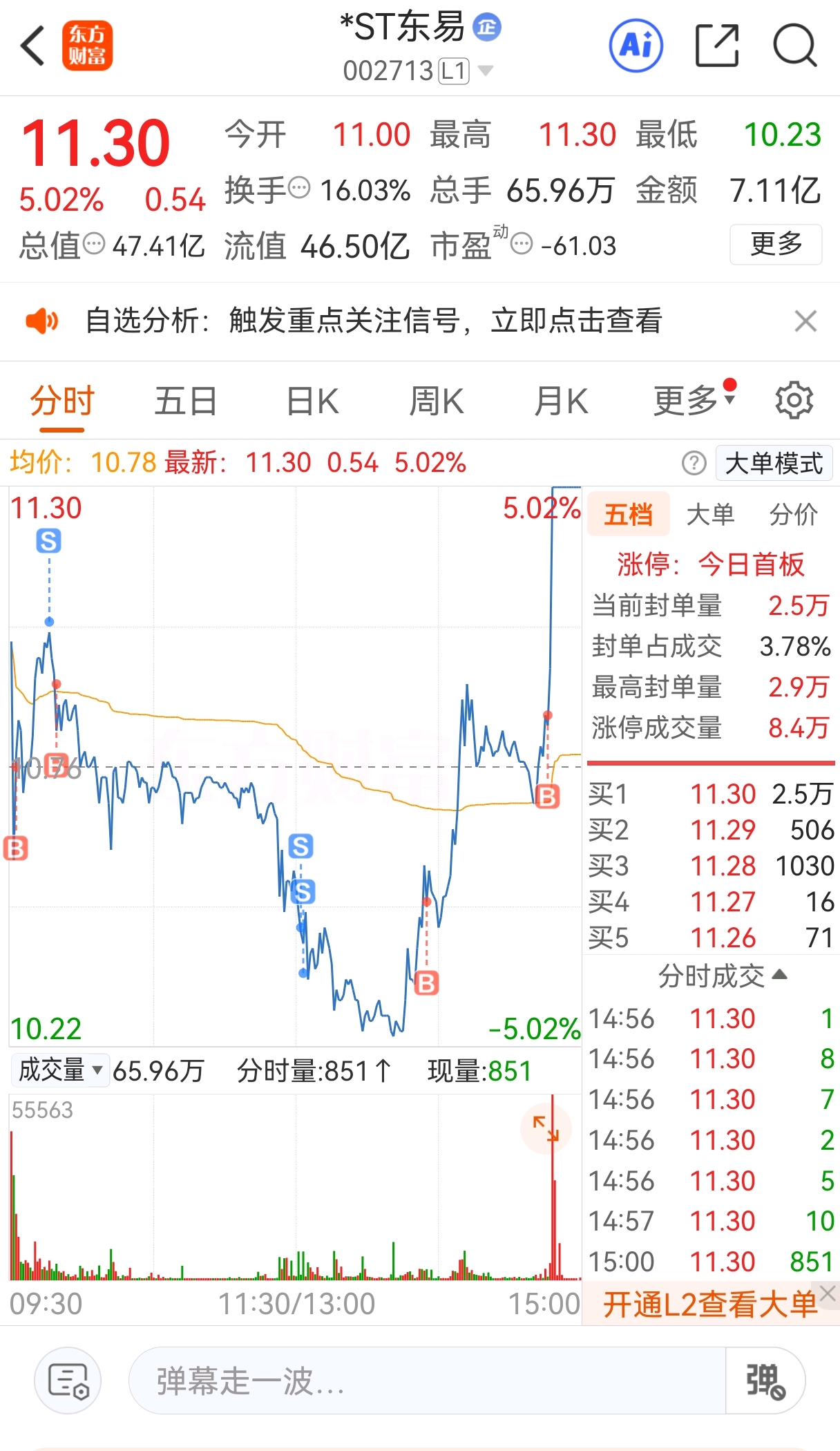 $*ST东易(SZ002713)$ 庄太凶狠了,被它洗出来三分之一