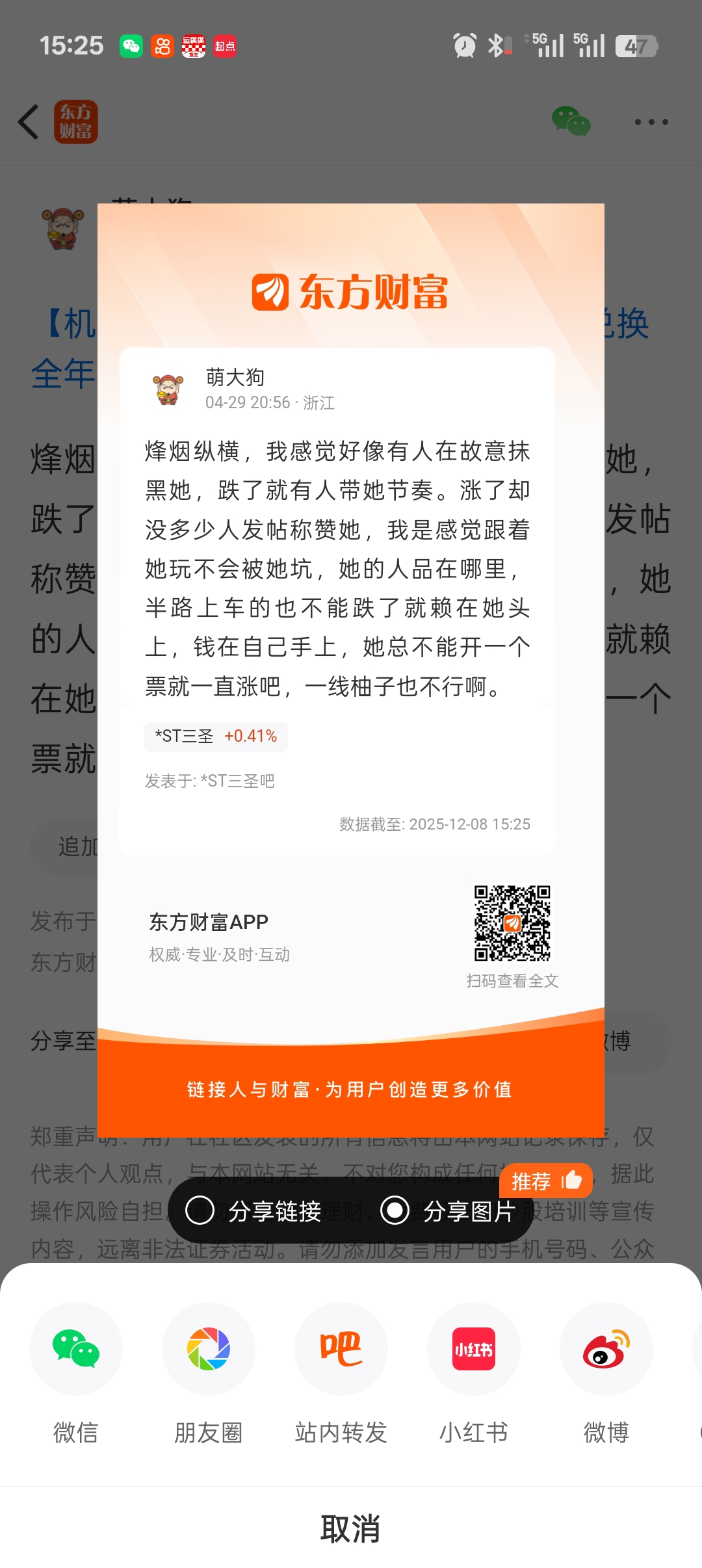 温馨提示: 1.根据《证券法》规定,禁止编造、传播虚假信息或者误导性信息,扰乱证券市场;2.用户在本社区发表的所有资料、言论等仅代表个人观点,与本网站立场无关,不对您构成任何投资建议。用户应基于自己的独立判断,自行决定证券投资并承担相应风险。《东方财富社区管理规定》