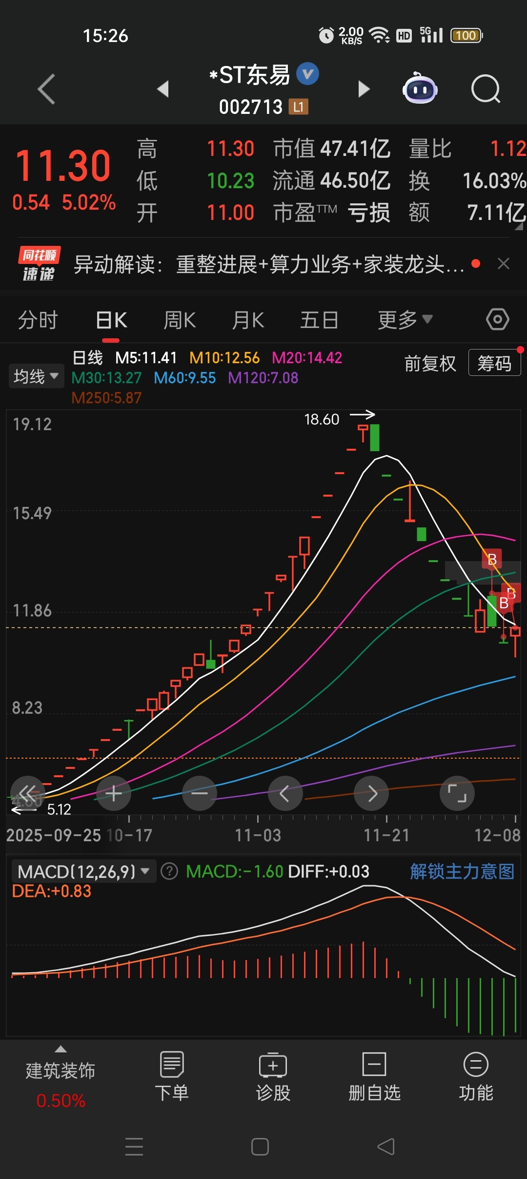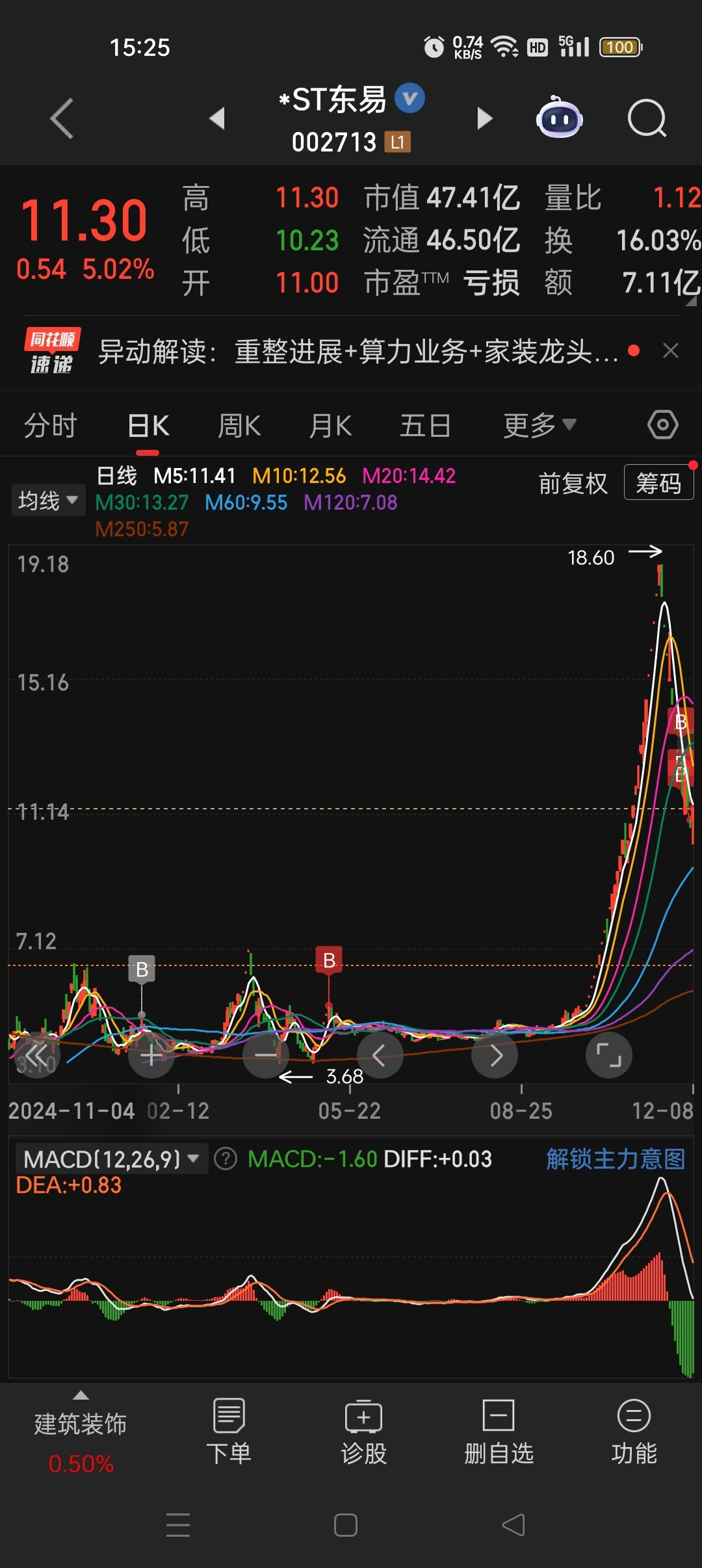 $*ST东易(SZ002713)$ 继续加仓,ST众泰 ST实达 ST天成基本都是买在底部 卖在顶部