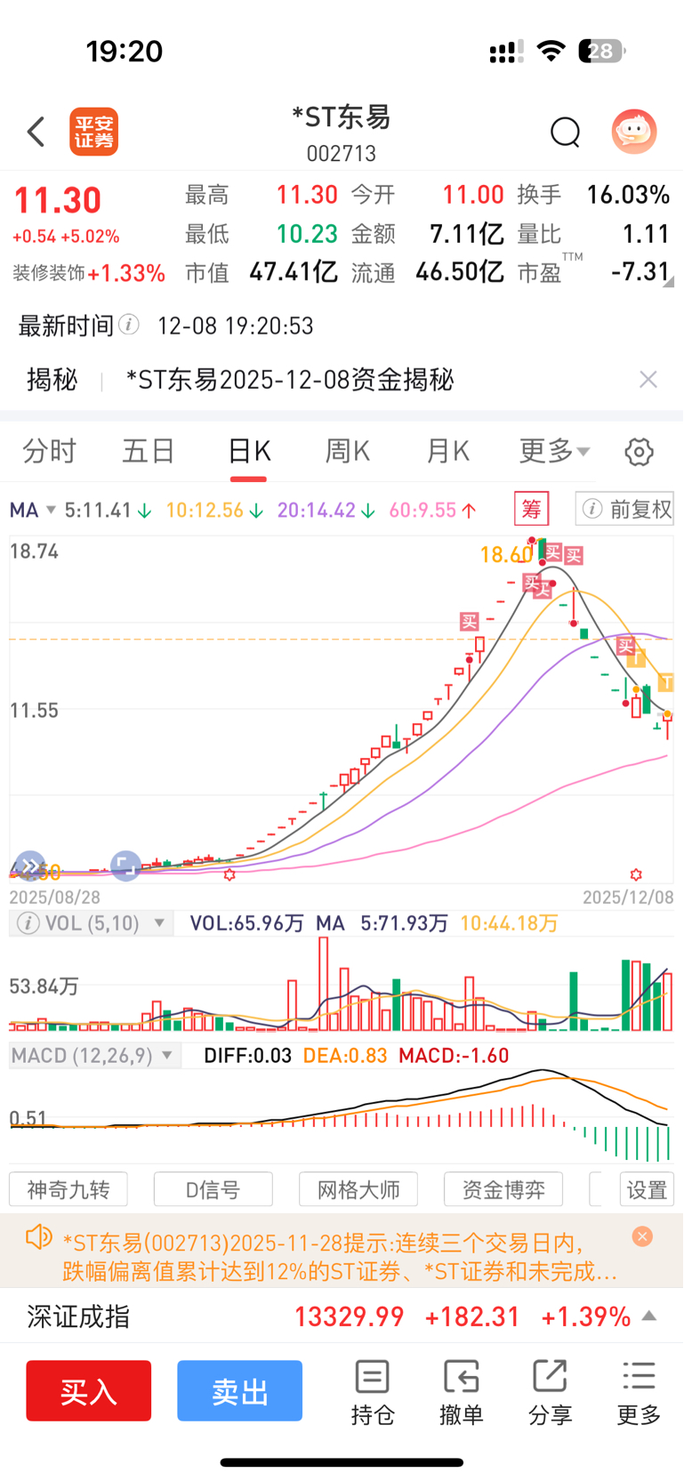 $*ST东易(SZ002713)$ 至今从未卖过一分,我看的不是今明几天的涨幅,所以目前随便涨或跌我不怎么关心。大多人买股票都狠不得立马涨,所以大多都不知不觉成为了韭菜。我提前布局只看公司前景,重整后公司如何运作才是关键,现在的跌或涨根本不重要。