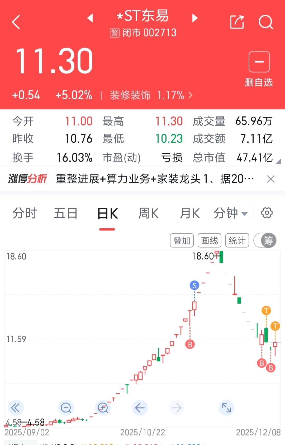 近日东易连续12跌停,真少见。直接原因就是除权。重整成功已经是板上钉钉的事,没想到主力还给了我们二次上车的机会,过程很惊吓…预计填权价格15元左右。有同车的老面孔吗