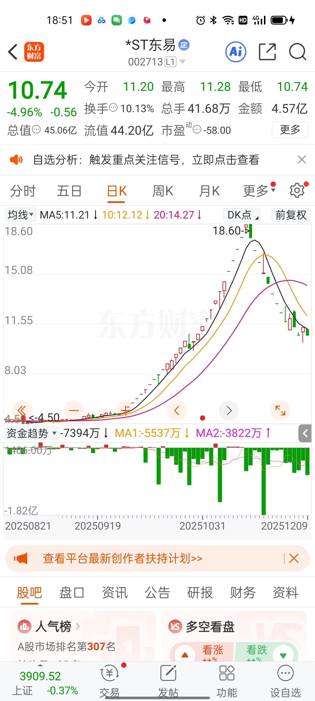 $*ST东易(SZ002713)$ 主力一直在诱多然后出货!