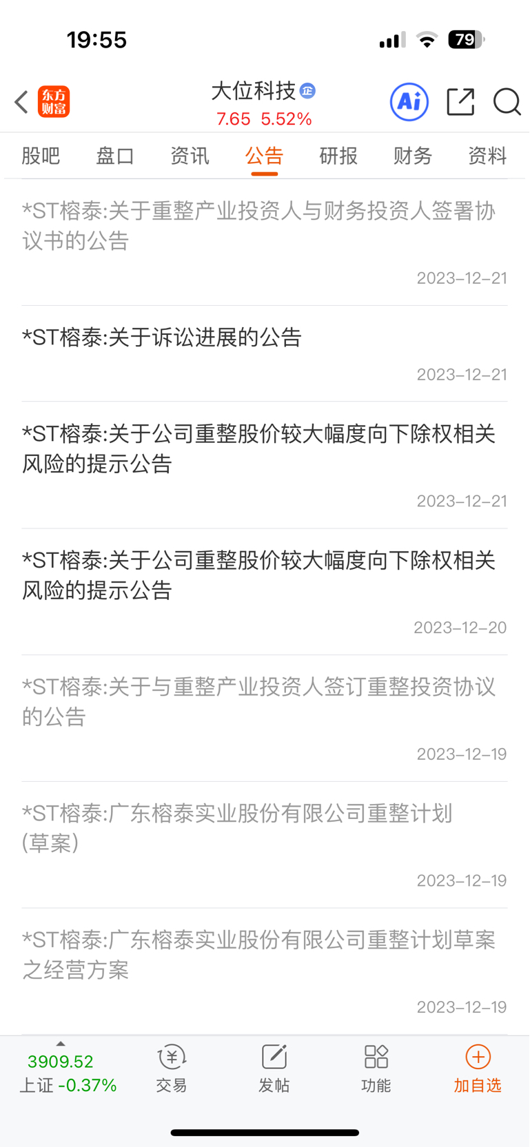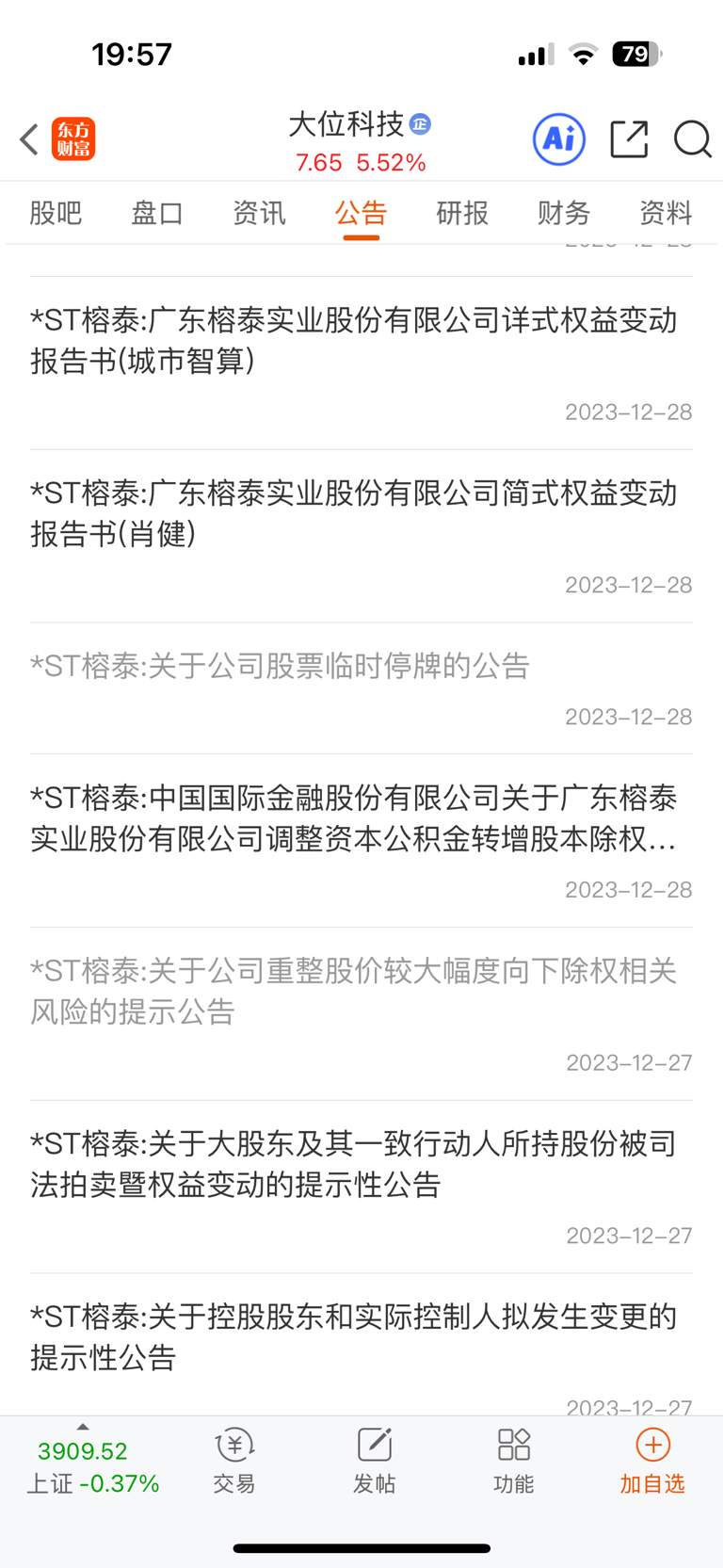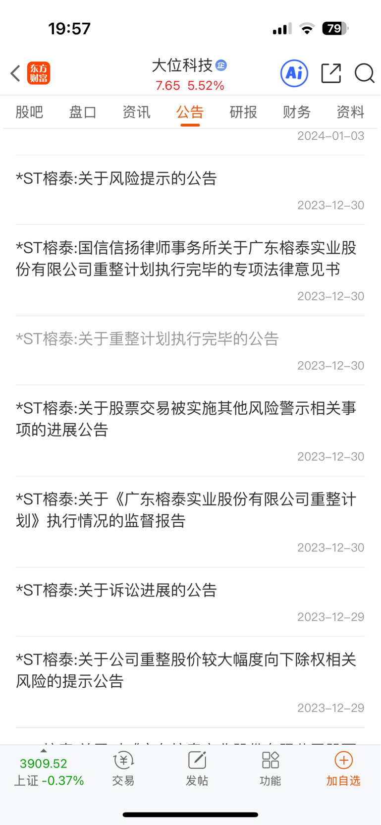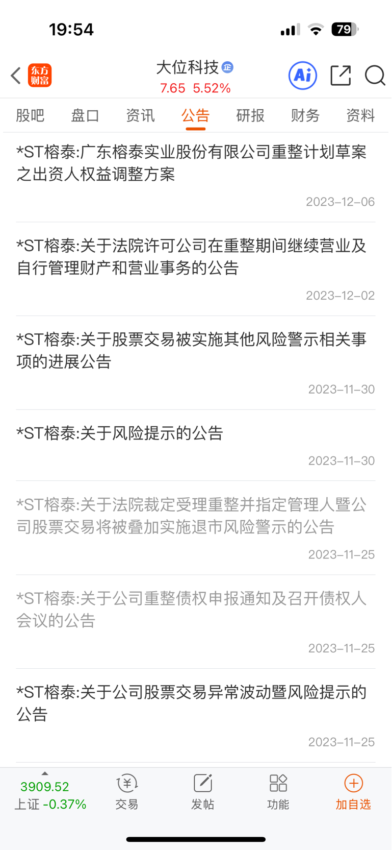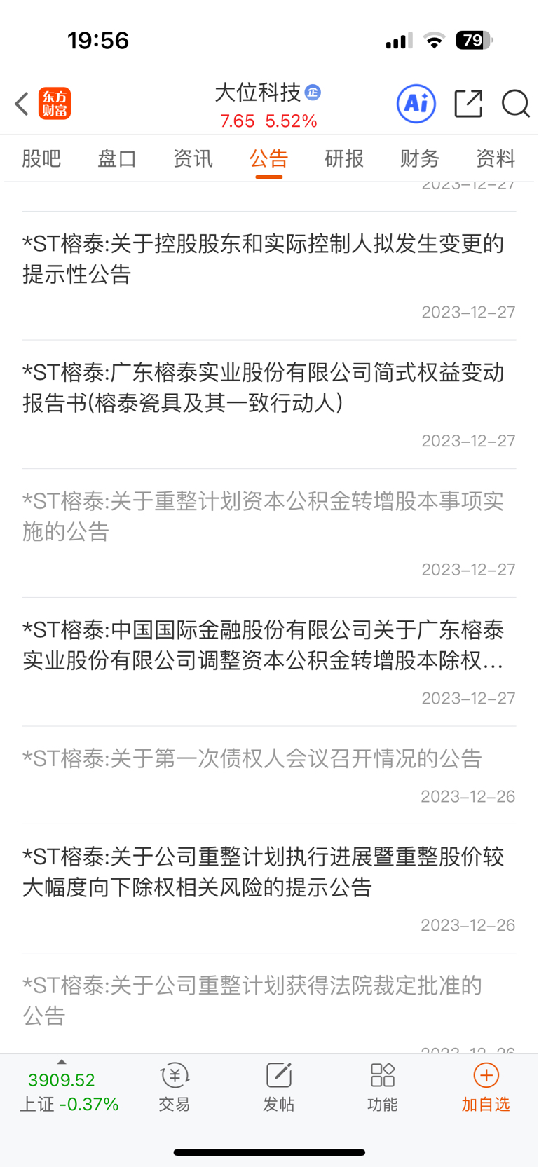 重整时间来不来得及,参考一下大位科技(原名*ST榕泰),重整投资人里面也有华著科技,法院受理重整和债权申报是11月25日(东易是11月19日),重整计划草案和经营方案是12月19日(东易是12月6日),12月25日开的债权人会议(东易是12月21日),发公告显示是12月26日通过了债权人会议,当天法院裁定批准重整计划,转增股本是12月27日,12月28日停牌1天、除权,12月30日公告重整完毕。