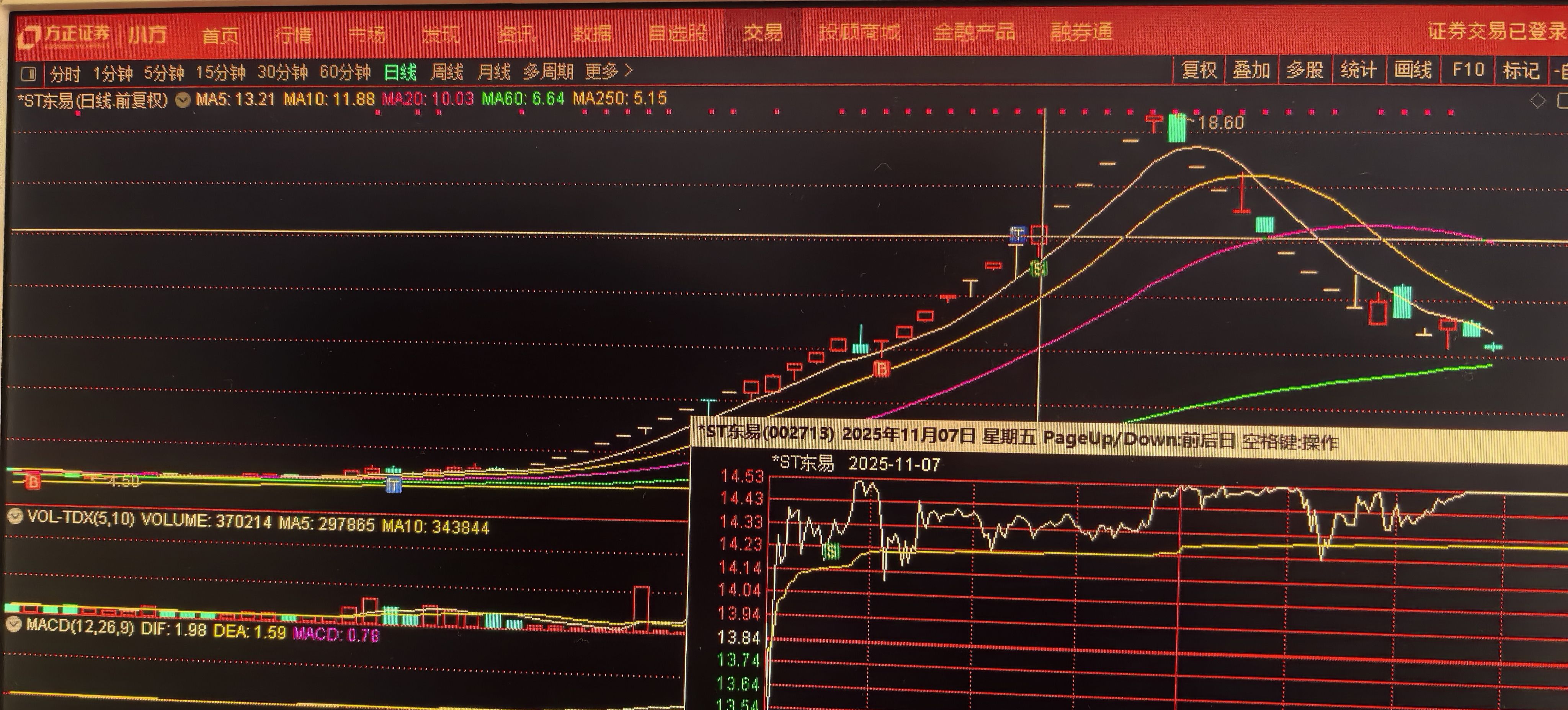 $*ST东易(SZ002713)$ 还好。哈哈哈,,我们抛了,就不买了,,现在看看高!!!