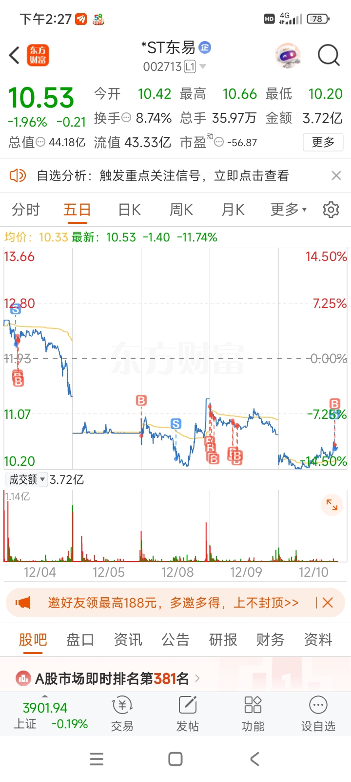 $*ST东易(SZ002713)$ 我以躺平摸鱼,双底确定,今干做T??能T个毛??底点足健抬高,不加仓你瞎吗?