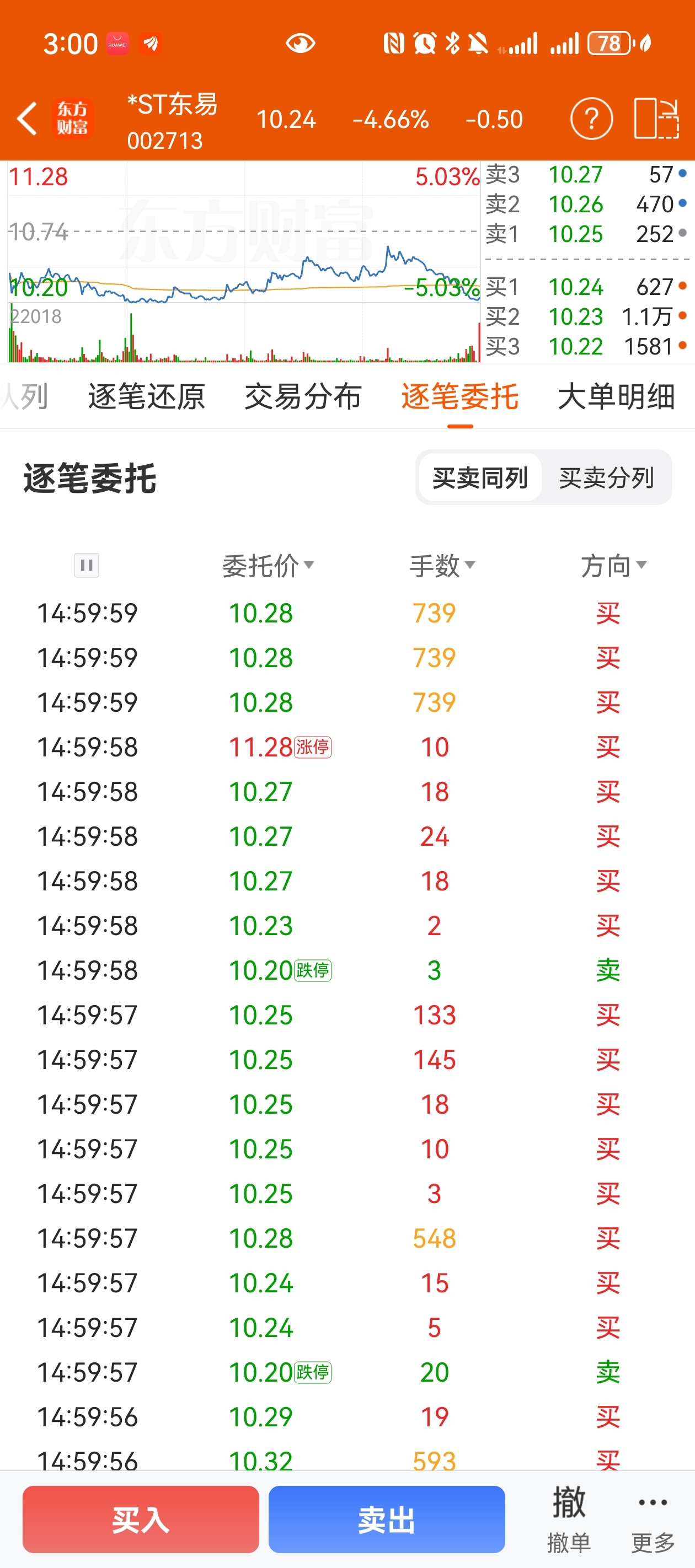 $*ST东易(SZ002713)$ 尾盘诱空,最后狂吃货。