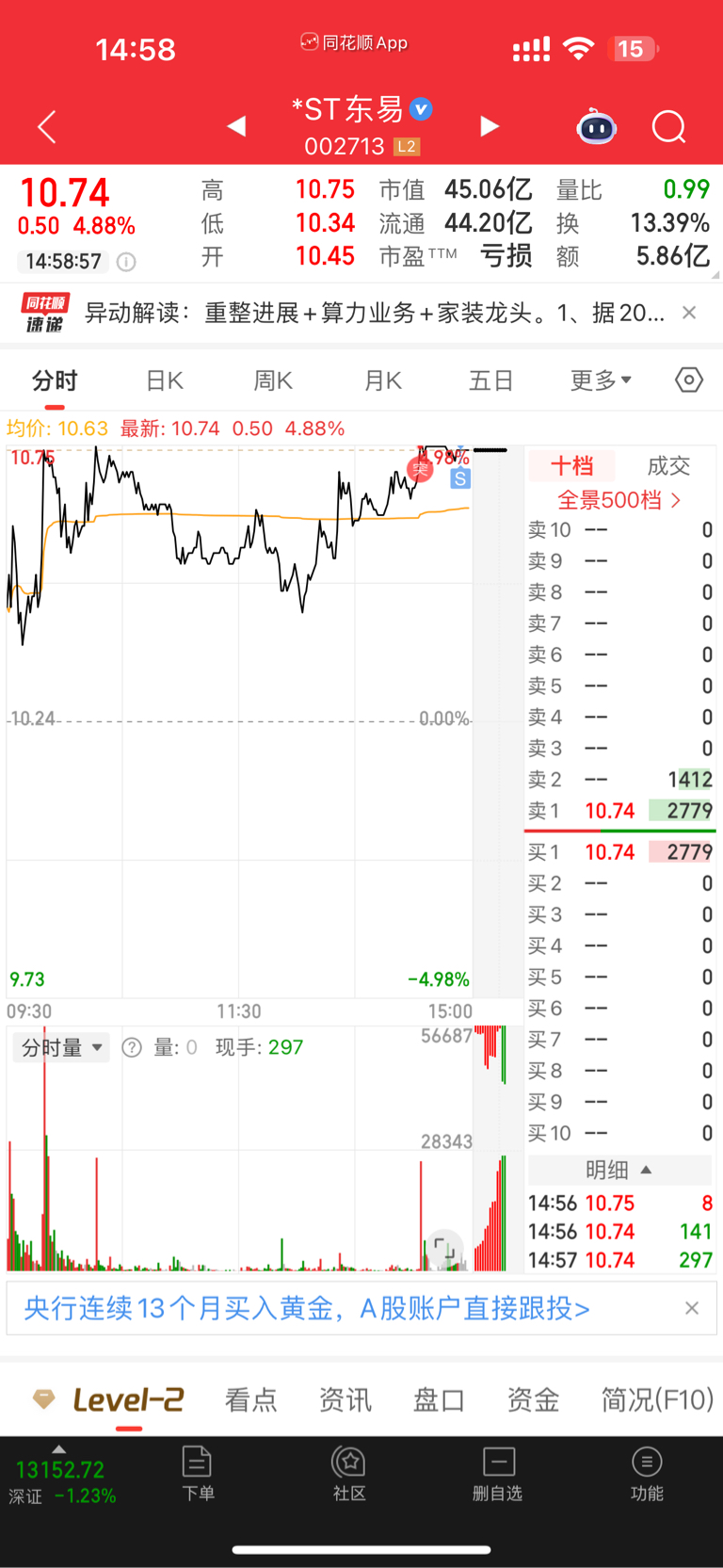 $*ST东易(SZ002713)$ 不管了、我走了、留下的发财