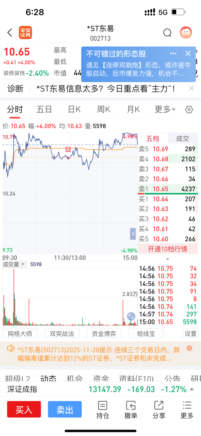 $*ST东易(SZ002713)$ 跌的差不多了,是时候我进场了,把手里剩下的资金全打上!