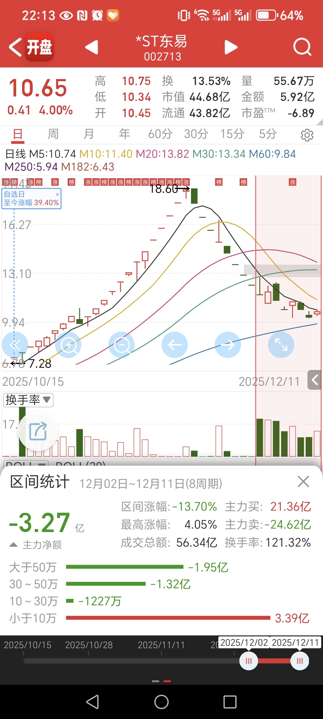 $*ST东易(SZ002713)$ 8个交易日,量能放大了几倍,成交额56亿,换手率121.3%。龙头已是强弩之末。
