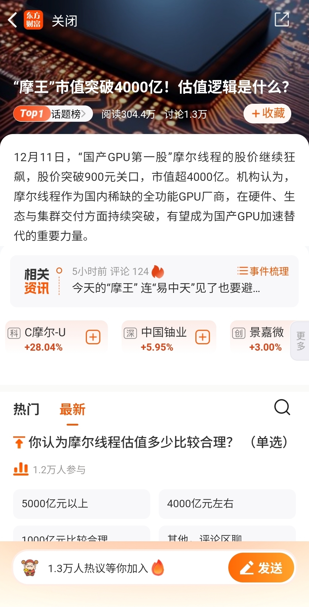 摩尔市值4000亿,东皇算力亲兄弟,最少最少最少市值2500亿不过分吧,发财了发