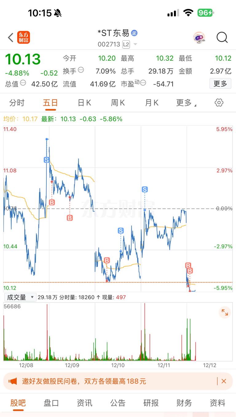$*ST东易(SZ002713)$ 不断做T,已经把成本基本降到了今天的跌停价了,表示一点都不慌,管它东西南北风,只要不退市就等着收米