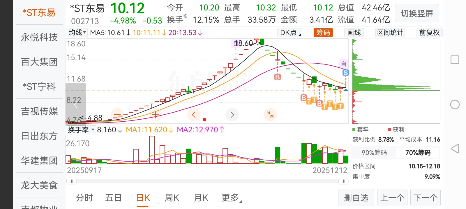 我现在彻底看空ST东易,东易的底部筹码都已经跑完了,庄家也跑完了,今天主力流出8
